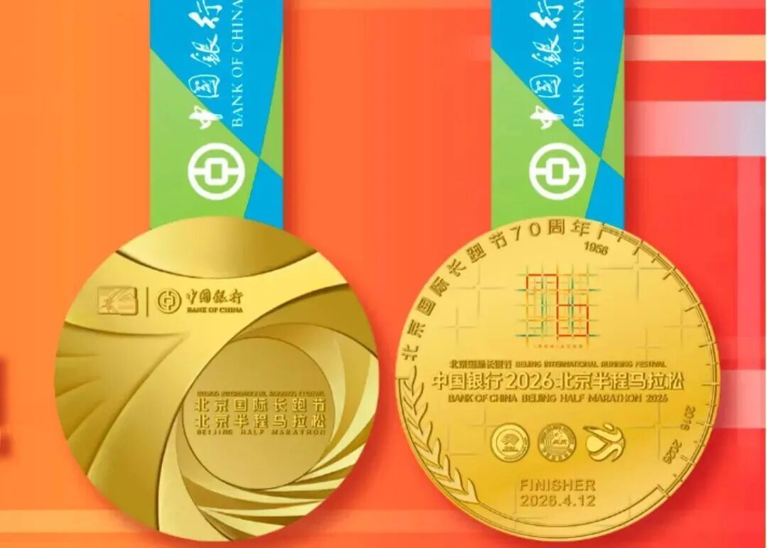 完赛奖牌以“七秩荣光”为设计主题,将马拉松运动的拼搏精神与北京国际长跑节70周年的辉煌历程凝聚在一起。奖牌正面采用简洁现代的视觉语言,突出艺术化“70”符号。背面则以鲜明的70周年彩色标识作为视觉核心,直观点明70周年纪念主题,兼具纪念意义与视觉层次感。1956、2016、2026等年份刻度环绕奖牌四周,象征70周年里每一段奔跑的时光刻度与历史年轮。参赛服装设计方面,则将北京“天圆地方”的古老智慧与城市气质融入其中。跑者能从衣服的纹理中找到长城青砖、故宫筒瓦的影子。