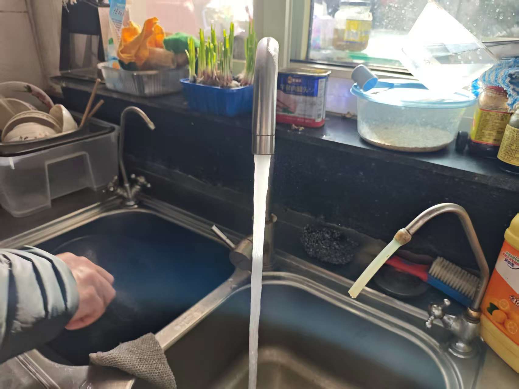此前,李各庄村上水碾片区(铁道附近)村民家中一到冬天用水就成了问题。受地势影响,这里的自来水管都是明管,铺设在地上,冬天气温低容易冻,村里就采取中午时段供水,早晚停水的方式避免水管冻裂,这样的方式持续了多年,村民们一到冬天就只能各自想办法存水。记者上次采访时,村民们说: