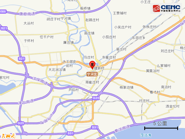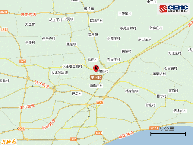 速报参数:据中国地震台网正式测定,8月1日0时22分在天津宁河区发生2.2级地震,震源深度20千米,震中位于北纬39.34度,东经117.82度。