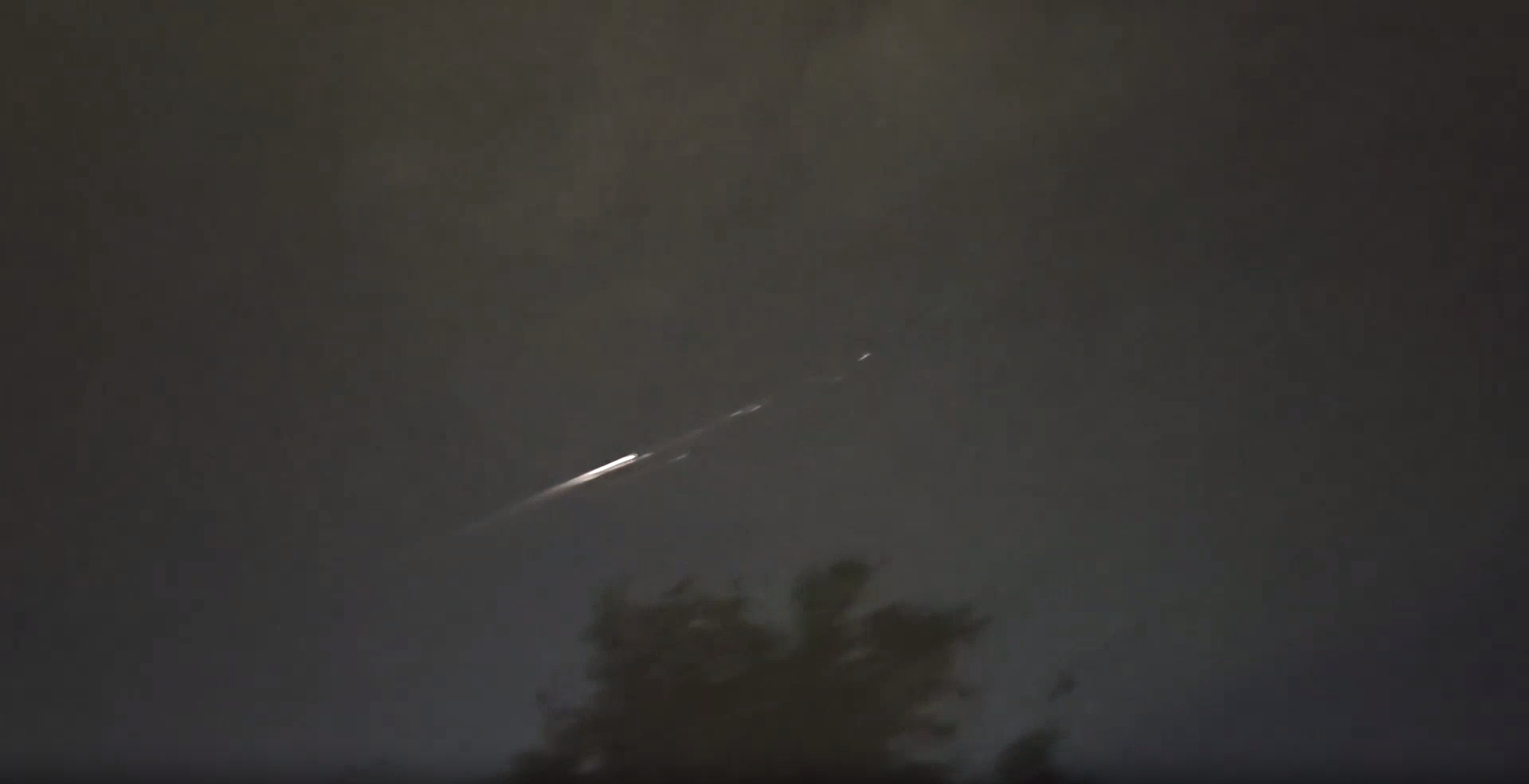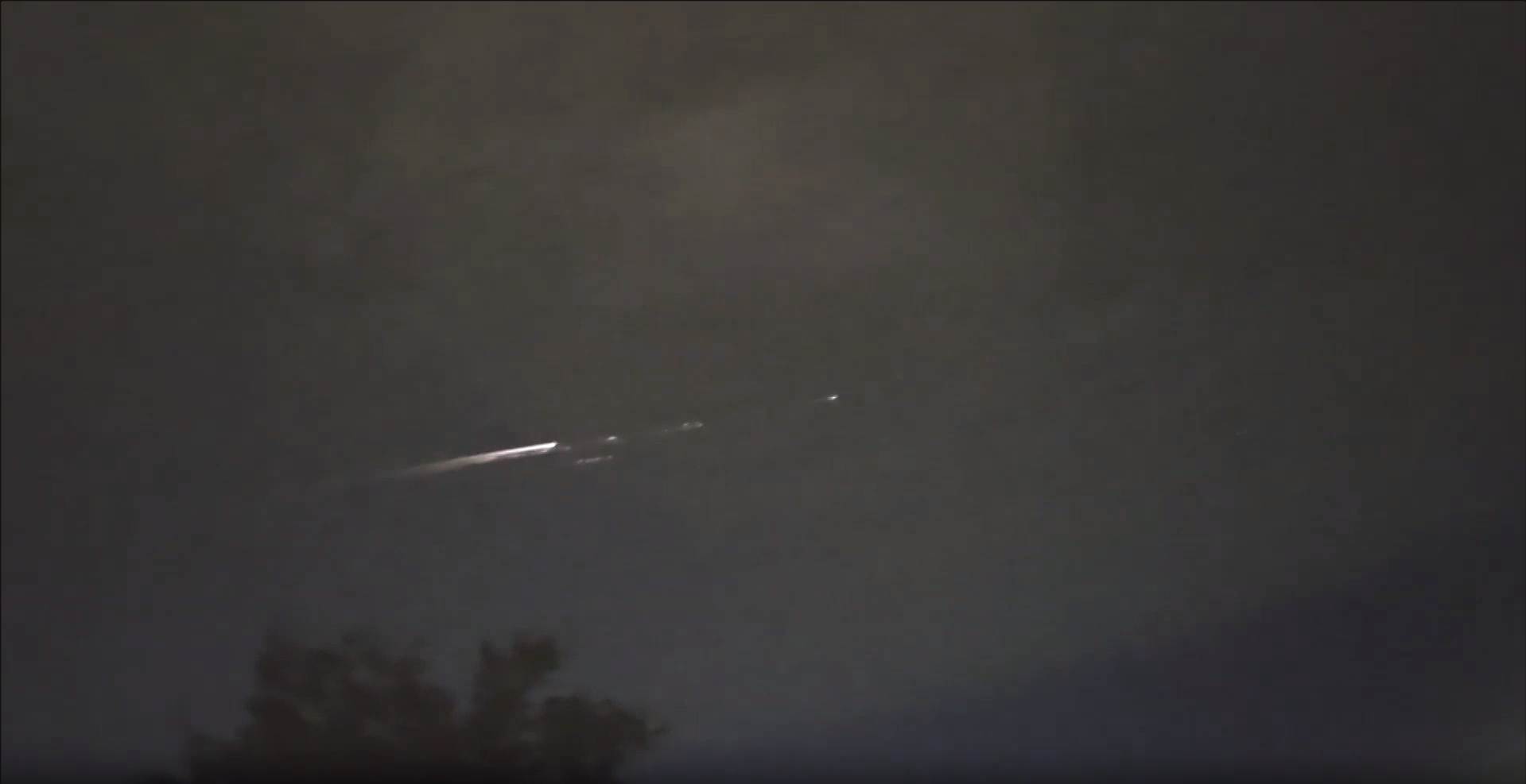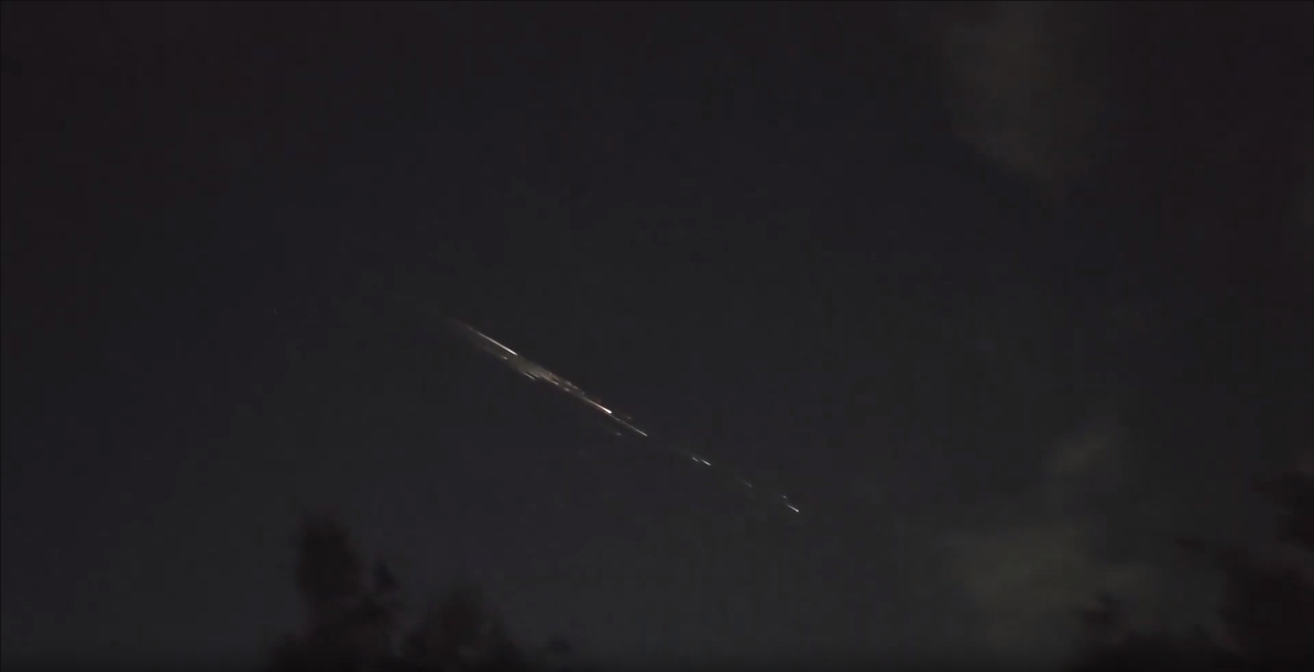 视频显示,火球呈现耀眼白光与橘红色尾迹,移动速度较慢,并在下降过程中分裂成更小的碎片。