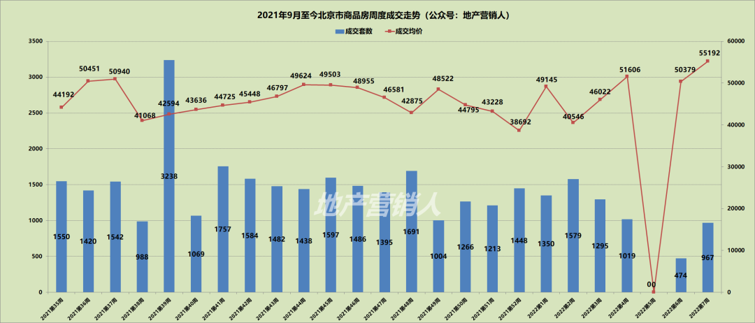 2022年2月14日—2月20日,北京市商品房成交967套,环比上涨104%;成交面积11.79万㎡,环比上涨88%;成交均价55192元/㎡,环比上涨10%;成交金额65.05亿元,环比上涨106%。