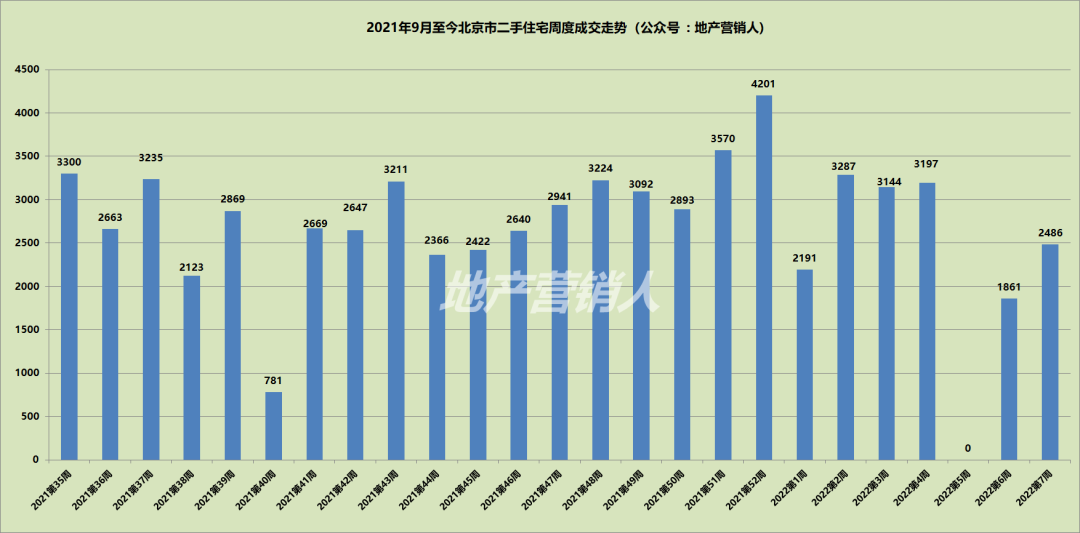 北京市二手住宅上周成交2486套,环比上涨34%;成交面积22.87万㎡,环比上涨40%。