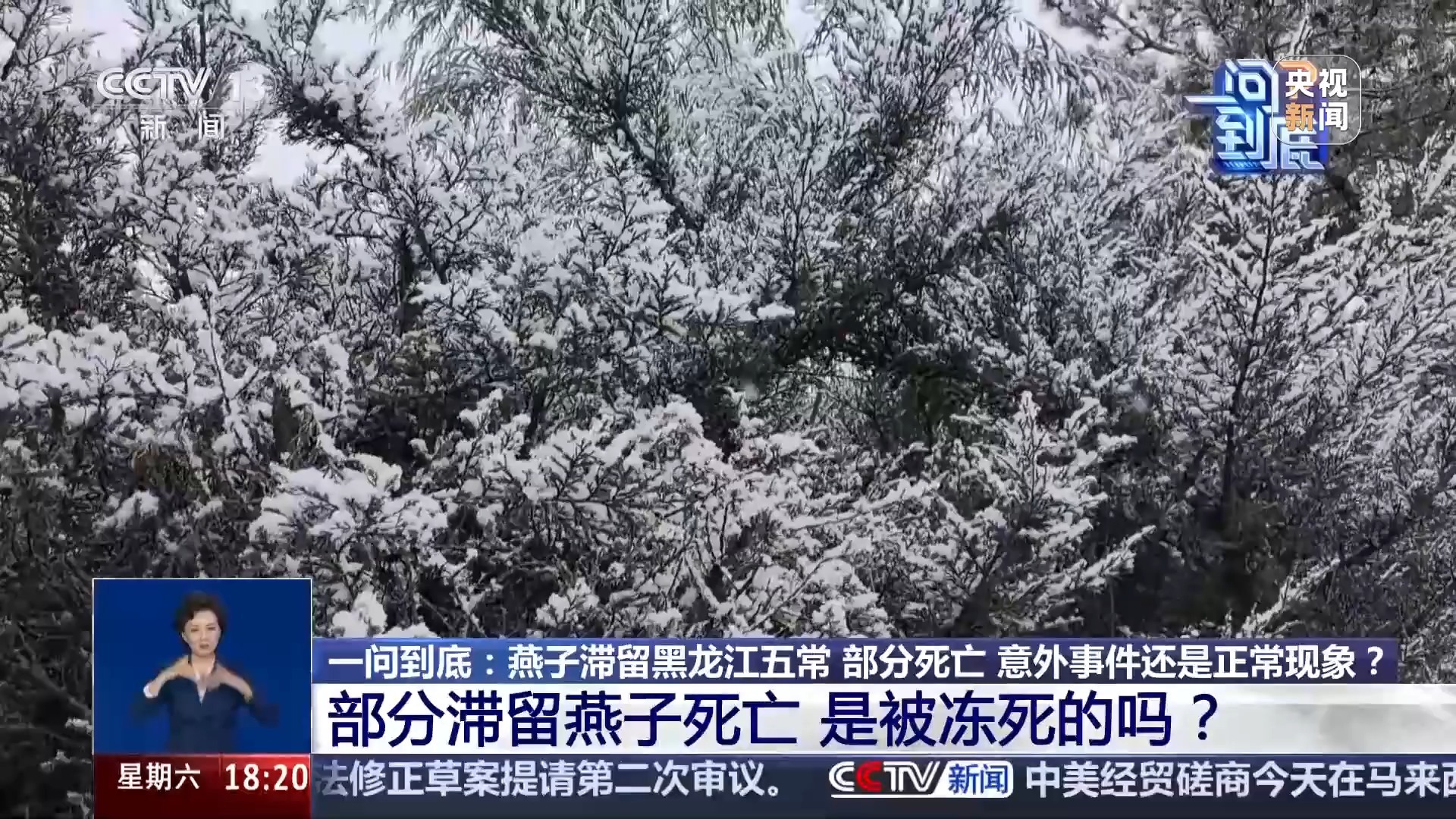 东北林业大学野生动物与自然保护地学院教授 许青:实际上,降温对大多数鸟类直接的生理影响一般都很小,就是说很多鸟不怕冻,冻不死。它怕饿,它要飞行,所以说能量补充是最为重要的,能量补充能维持较高的体温。鸟类的体温平均能达到40多度42度左右,而这种阻隔,又收集不到食物,就会出现一些燕子由于缺乏能量死亡的现象。