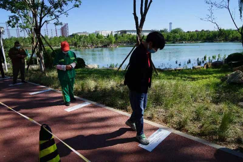 (记者 胡知奂)在龙潭西湖公园内的一处核酸采样点,一条条印有公园特色植物介绍和传统文化诗词的科普“斗方”替代了原先黄黑相间的“两米线”,担当起了引导居民有序排队,保持安全距离的重任。