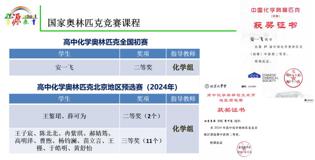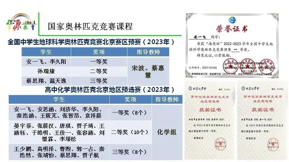 奥林匹克竞赛课程:多年来,学校在数学、物理、化学、生物、地理等奥林匹克竞赛中均有建树,多名学生在全国及北京市比赛中获得优异成绩。