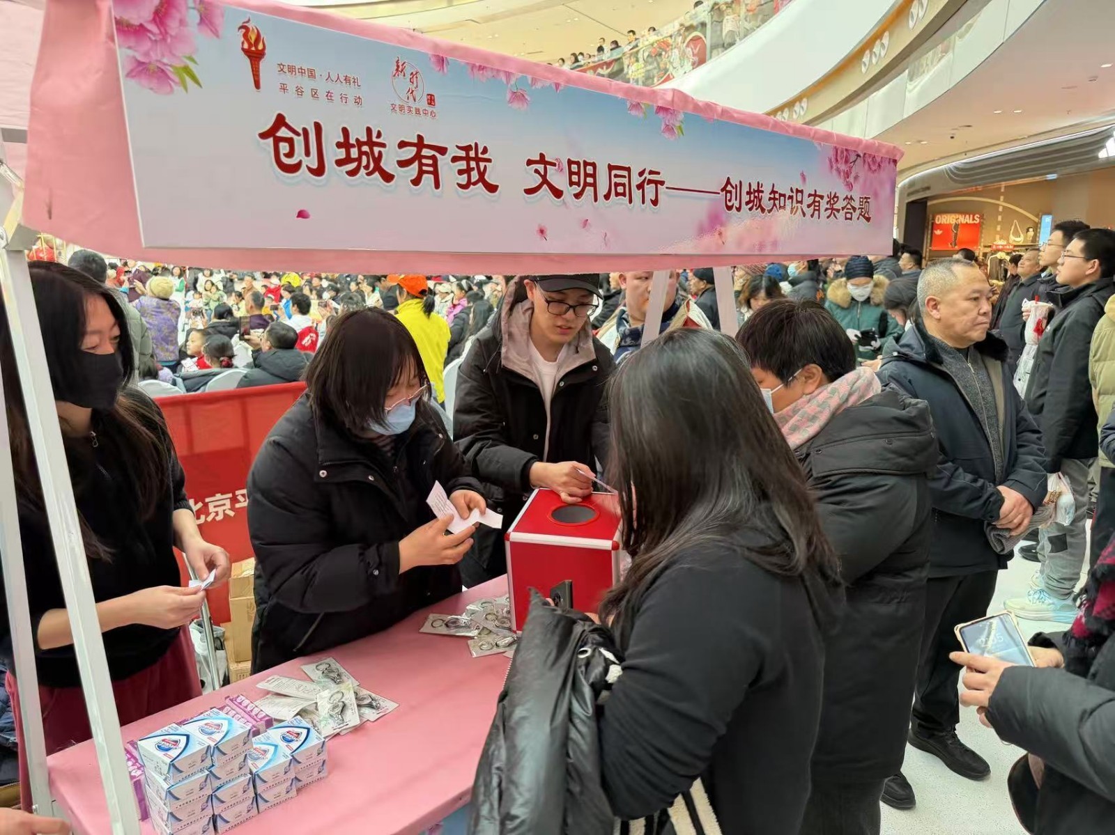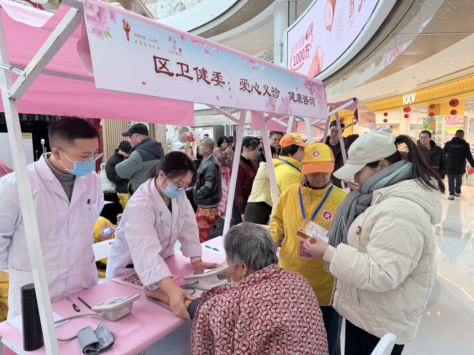 本端讯(记者 刘鑫)为传承中华优秀传统文化,培育和践行社会主义核心价值观,丰富群众精神文化生活,营造欢乐文明的节日氛围,2月7日下午,平谷区委宣传部、区新时代文明实践中心在万达广场一层中庭举办“文明迎新春 送福到万家——我在新时代文明实践中心过寒假暨文化科技卫生‘三下乡’”集中示范主题活动。区委宣传部、区文旅局、区卫健委、区文联、区商务局、区科信局、区司法局、区科协、区融媒体中心及各乡镇街道相关负责同志参加活动。
