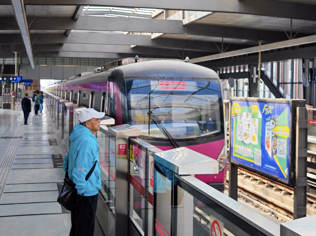 4月13日,在地铁万源街站,北京地铁亦庄线恢复运营。随着大风天气风力变化,因大风暂停运营的部分北京轨道交通地面和高架线路恢复运营。邓伟摄