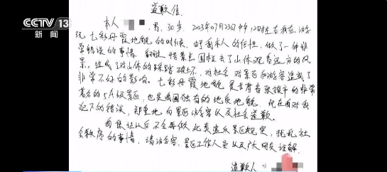 这段视频发布后,经相关部门调查,该游客进入的区域是彩色丘陵保护范围,行走的山脊被黄土覆盖,未造成丹霞地貌实质性损害,但其行为违反了《张掖七彩丹霞保护条例》和《治安管理处罚法》的相关规定,景区派出所依法对该游客处以200元罚款。