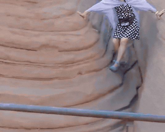 在网友拍摄的视频中可以看到,这位女子站在岩石的凹陷处,两手扶着山壁,不停调整姿势,反复踩踏,下方还有同行人在指导动作。