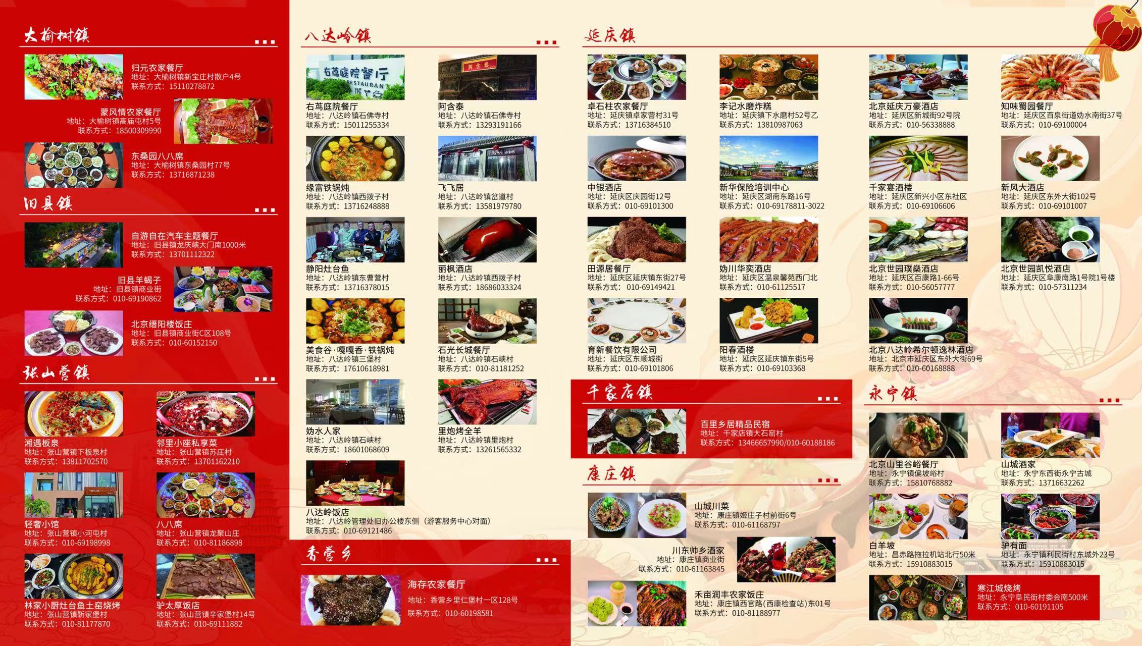 地图囊括地域景点、地道美食、地区酒店,覆盖张山营、八达岭、旧县、井庄等延庆14个乡镇。