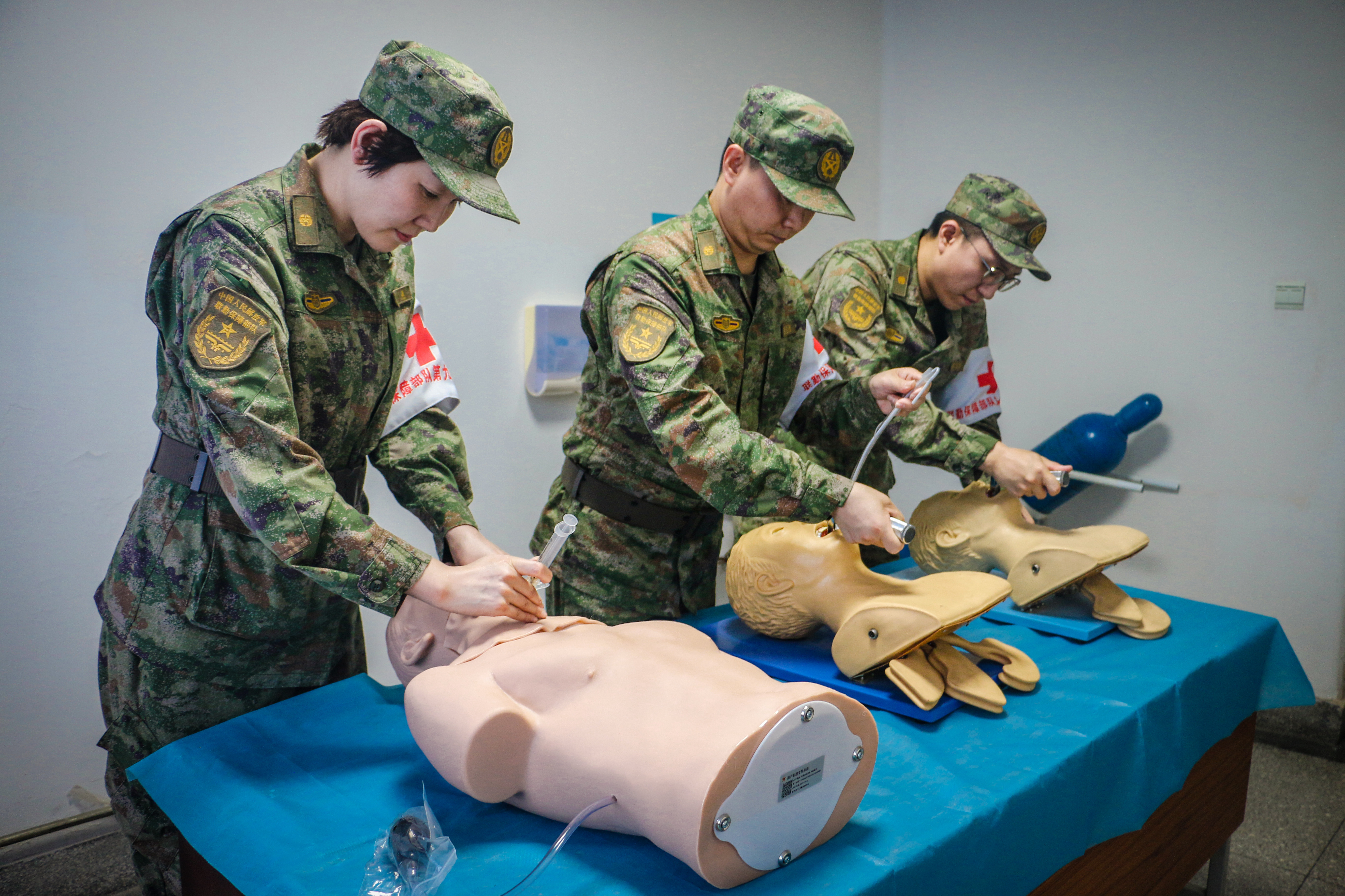 “同志,左前臂炮弹伤大出血,立即转入自救!”刚完成批量伤员救治的医护人员接到新指令,迅速取出旋压式止血带,在高温炙烤下仍保持动作规范,快速完成自救流程。后方救护所内,医护人员同样面临“双重考验”:一边要高效处理枪弹贯穿伤、闭合性骨折等战伤,一边要密切监测高温环境下伤员生命体征,通过快速检伤分类、协同手术救治,短时间内完成多批次“重伤员”紧急处理,并在伤情稳定后迅速组织后送。