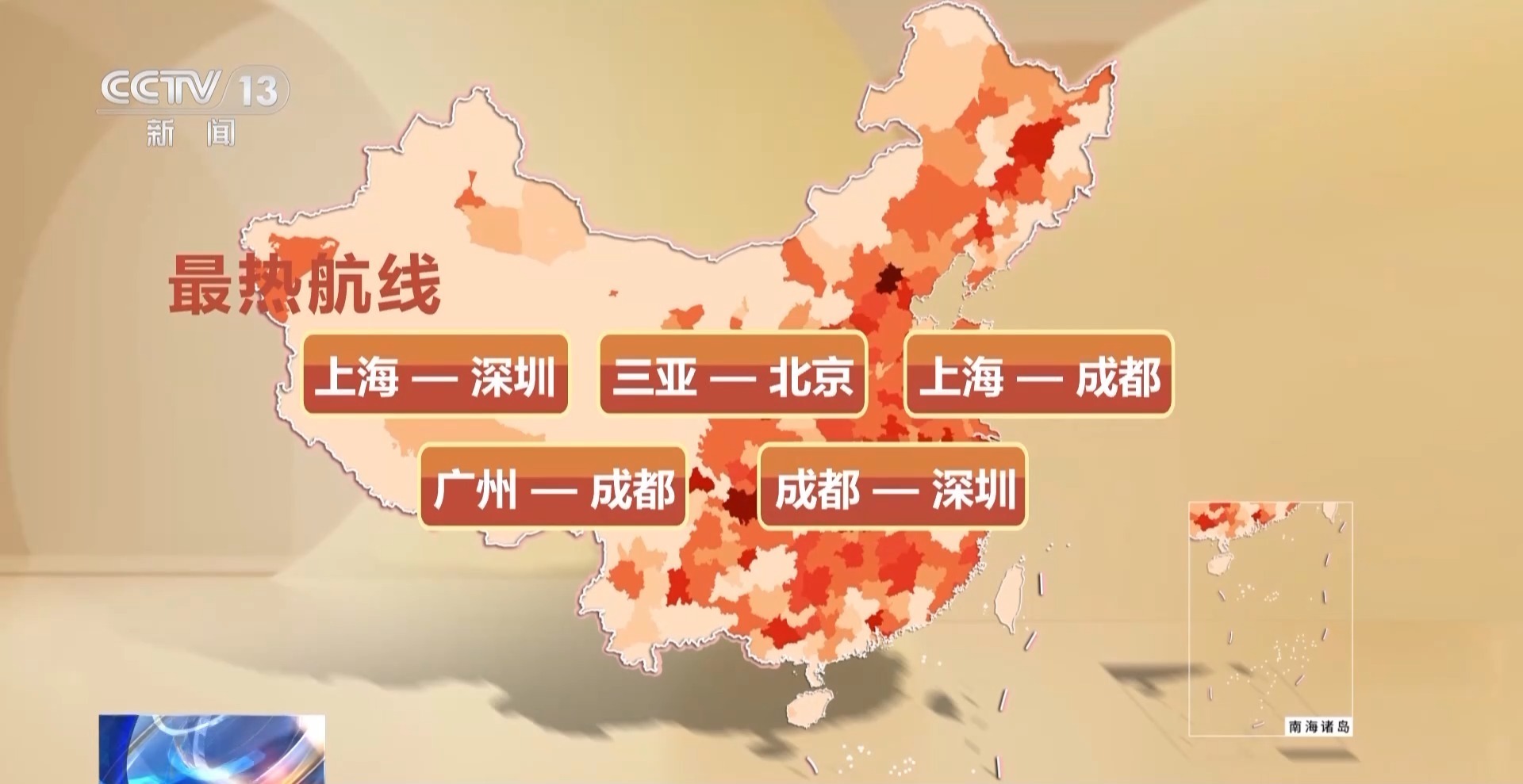 “航旅纵横”数据显示,截至目前,有近900万旅客乘坐飞机开启行程。最热的航线有上海北京之间、北京成都之间、北京广州之间、北京深圳之间、上海广州之间、上海深圳之间、三亚北京之间、上海成都之间、广州成都之间、成都深圳之间的航线,北京是热门航线的热门出发地和目的地。