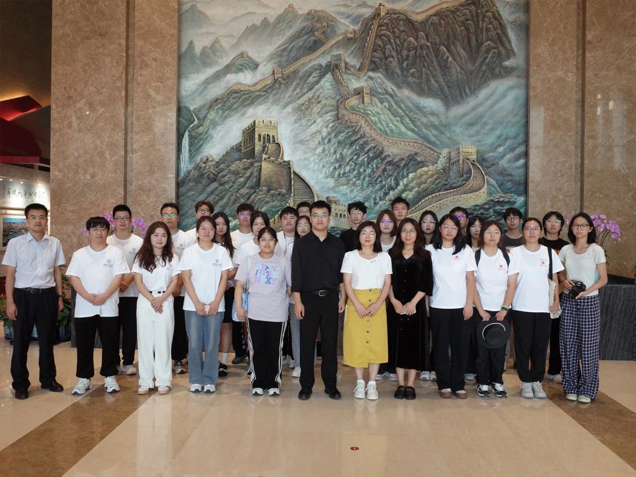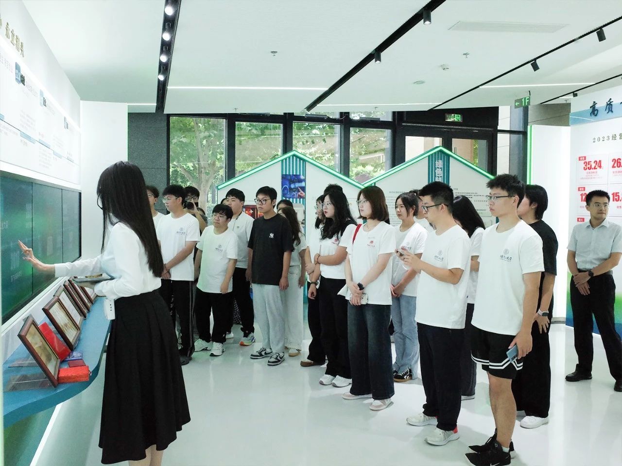 随后,研学实践团来到第二站——北新集团建材股份有限公司(以下简称北新建材)。通过亲临企业,同学们得以零距离接触建材产品,感受企业党建文化,了解企业转型战略等情况。北新建材相关负责人热情欢迎同学们来到企业,并邀请大家深度了解企业科技创新成果。参观途中,同学们对新兴技术在企业生产开发中的具体实践展现出浓厚兴趣。此次企业参访使同学们充分打开视野,洞悉市场前沿动态,并为后续课程学习提供方向指引。
