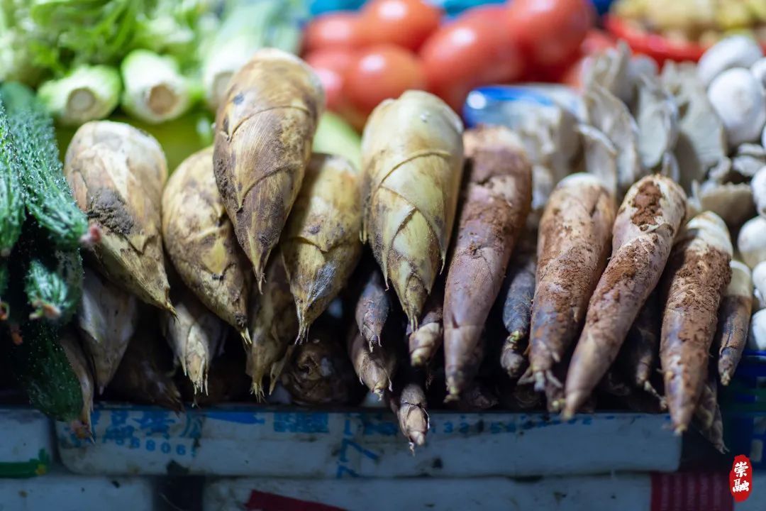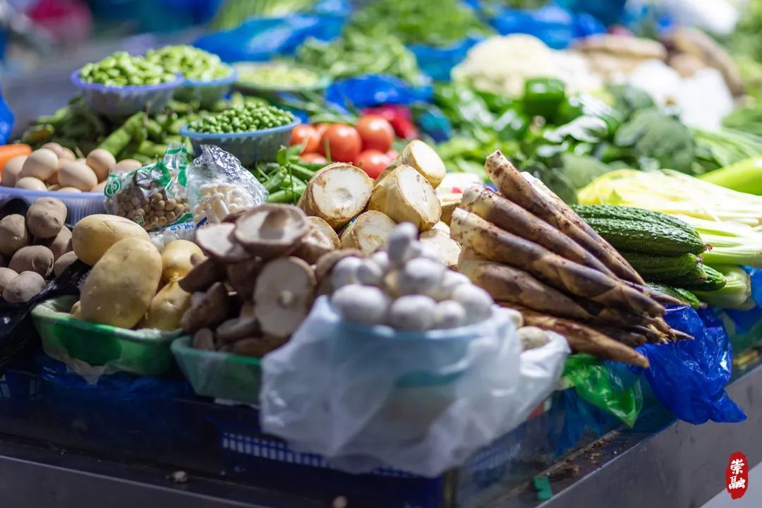 菜场里青翠欲滴的野菜
