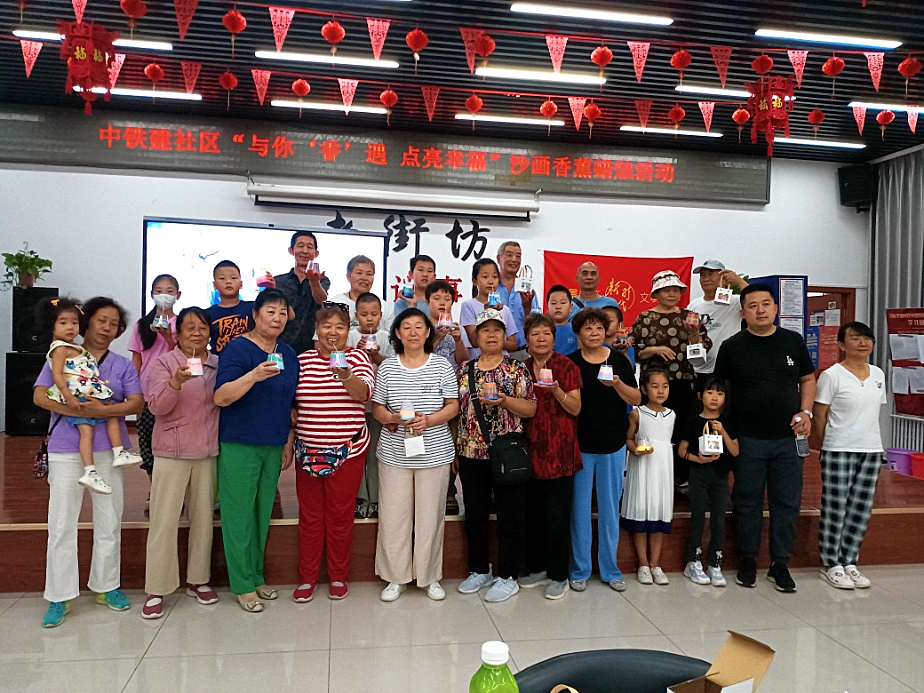 活动现场散发着阵阵香气,沁人心脾,令人身心放松,大家纷纷捧着自己的作品合影留念,记录下这一美好的“香”遇时刻。居民章书申高兴地说:“沙画香薰蜡烛的制作过程,是一场视觉与嗅觉的双重体验,不仅能舒缓身心,还拉近了邻里感情。”