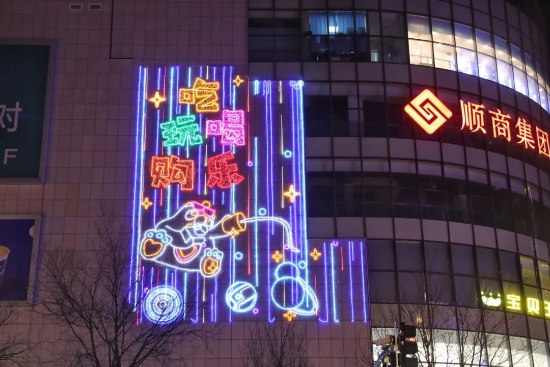 据顺商集团资产管理部负责人孟远介绍,集团对旗下门店开展了新一轮亮化提升,此轮完成了6家核心门店的改造,打造了9款特色亮化图案,全部采用节能灯具,兼顾了美观与环保。“夜景照明不仅提升了门店的辨识度,保障了市民出行安全,也有效激活了周边的消费购物氛围。新的一年,我们将继续以市民需求为中心,把便民服务做好、做细、做实,让大家在顺商购物更舒心、更放心。”孟远说。