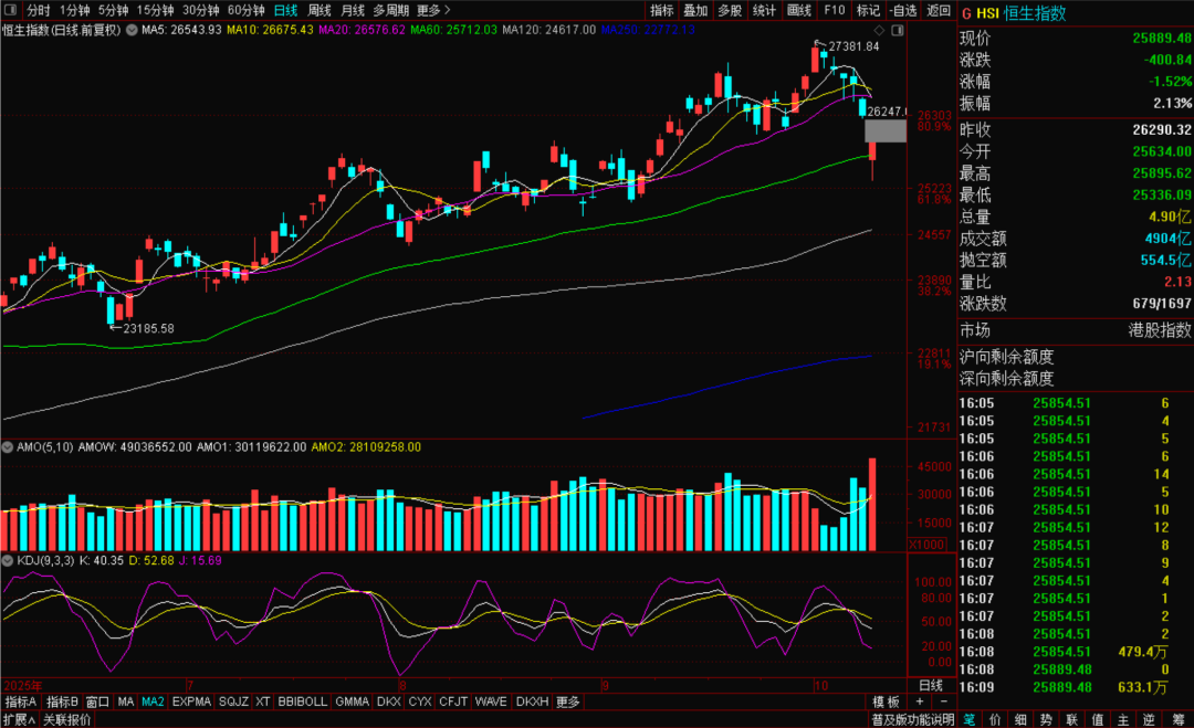 虽然今天A股指数低开高走,但港股恒生指数走势偏弱。