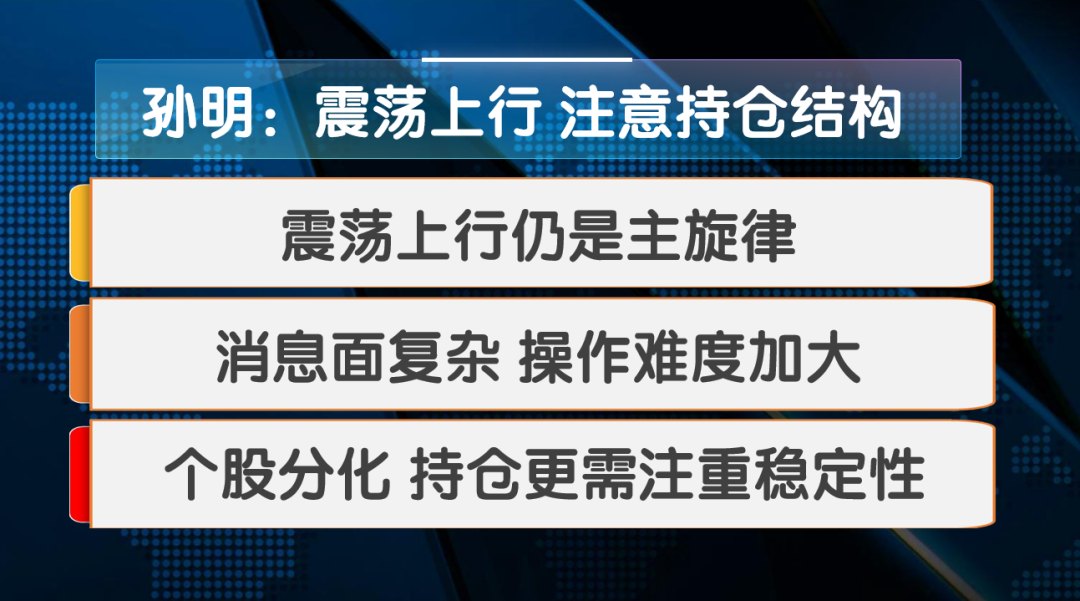 现场嘉宾孙明认为,指数震荡上行,但要注意持仓结构: