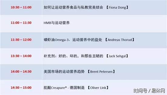 3M层—3M3,同样是在3层,会有一个国际营养运动教育研讨会,邀请了来自国内外运动营养产业的6家知名企业为从事健身行业及热衷运动的人群普及有关运动营养的知识。讲座时间会从上午10:00—15:10。