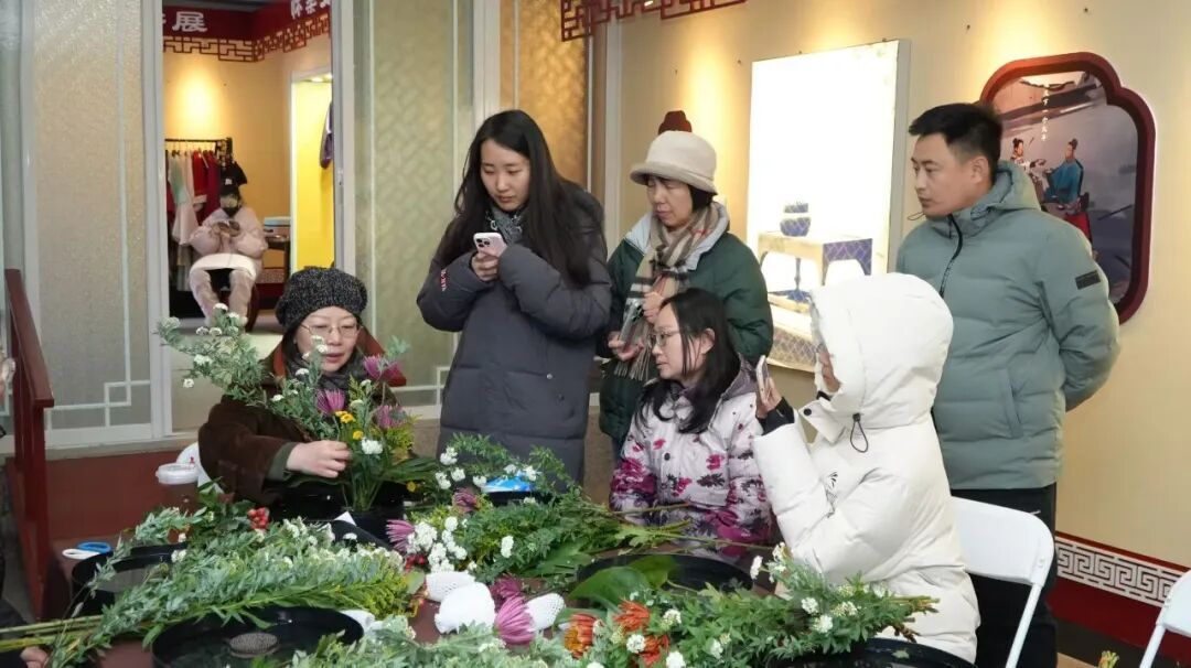 此外,景区文化长廊也化身新春雅趣聚集地,宋韵风华与非遗匠心在此完美交融。活动室内,游客可体验焚香、点茶、挂画、插花四大宋式雅事,由专业老师现场指导,一招一式间,感受宋代文人的雅致生活;长廊边,焦家浸烙葫芦、螺钿、鱼灯、吉祥沙燕鸟四大非遗技艺展演,非遗传承人现场献艺,让游客近距离感受传统工艺的精湛技法。
