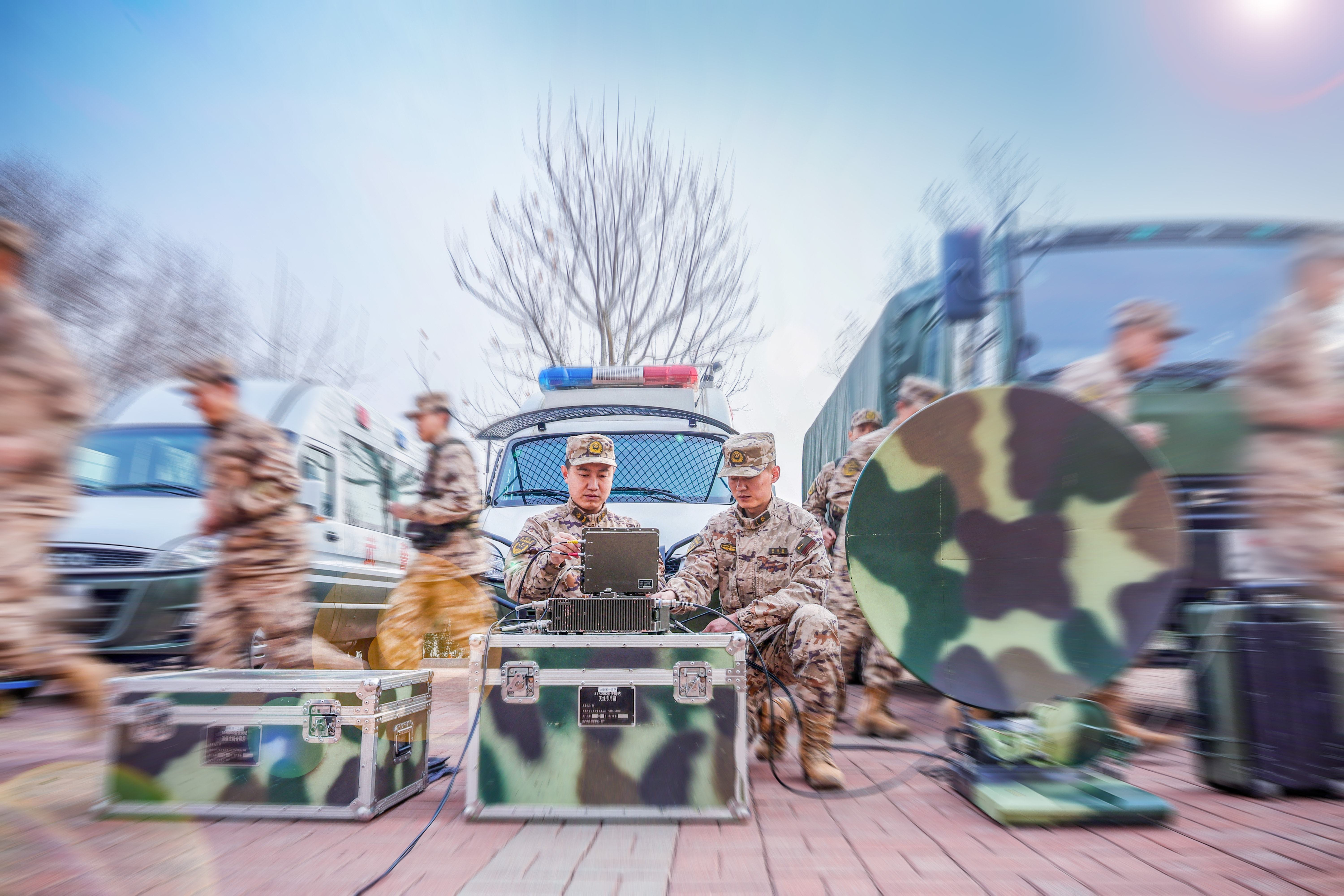 天线架设、卫星通联、线路连接、装备测试……近日,武警天津总队执勤一支队某部通信分队紧抓练兵备战,掀起专业训练热潮。一场全流程、全要素的通信保障演练正在紧张有序地展开。