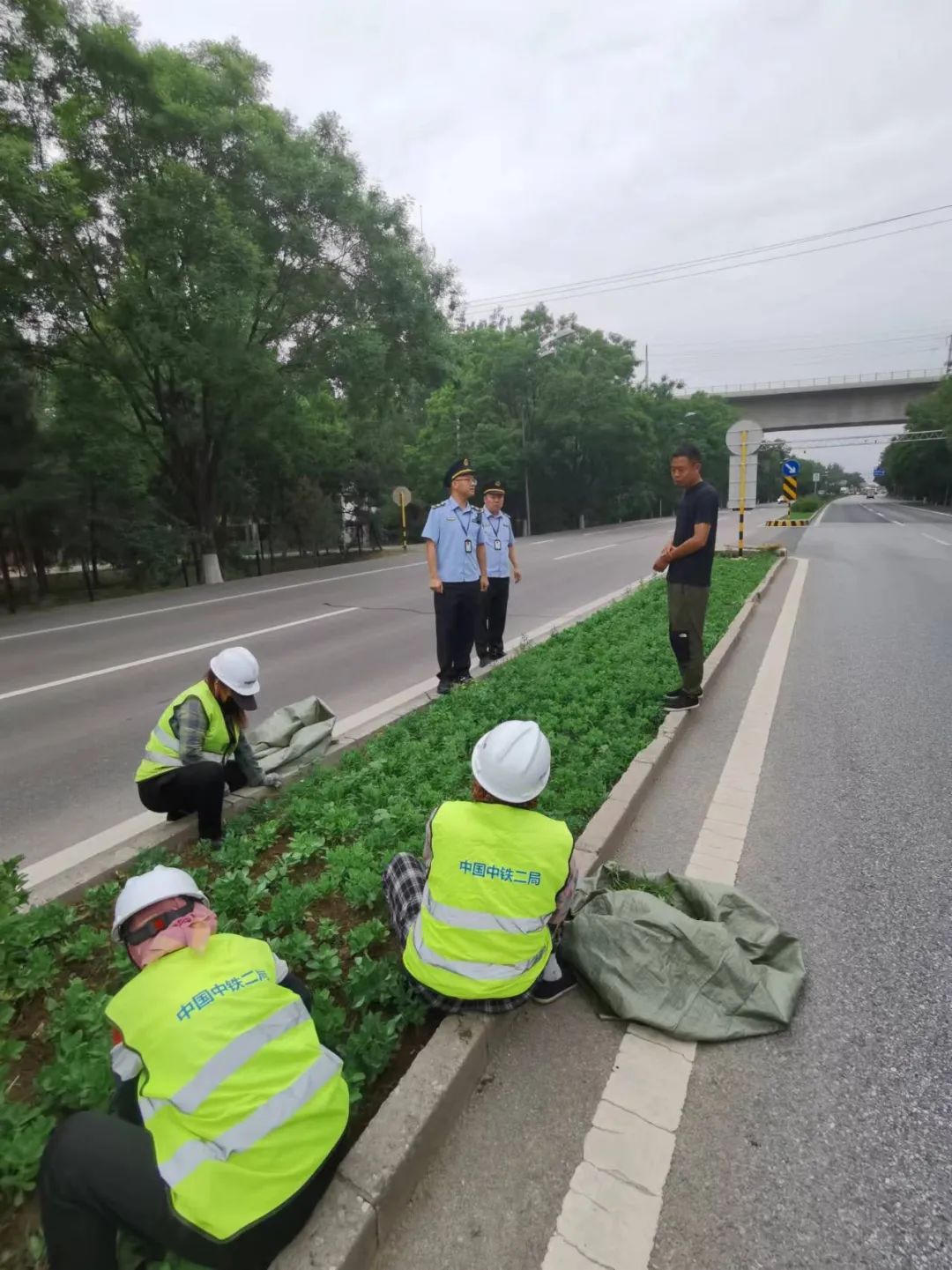 执法队第一时间启动“线上+线下”联合执法程序,外勤执法人员接到线索后迅速赶到指定位置,责令现场施工人员立即停止作业,退至安全区域。经调查,该绿化养护工程已办理相关审批手续,在许可首日展开作业,但在施工过程中,未严格按照技术规范和操作规程进行公路养护作业,涉嫌违反《公路安全保护条例》。
