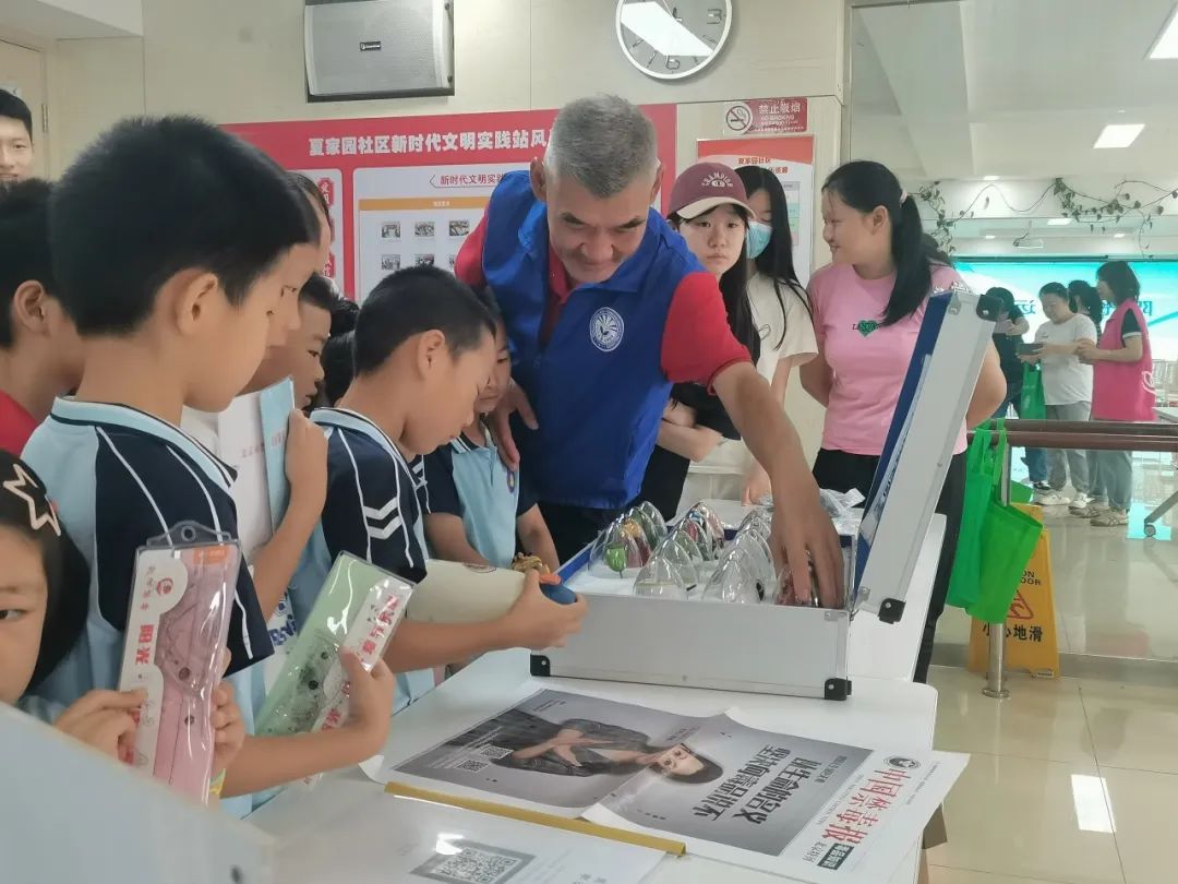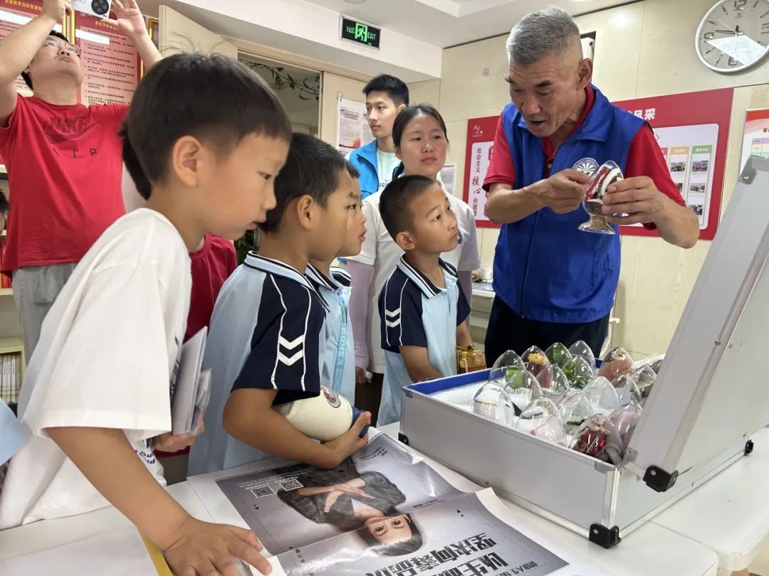 随后,讲师与工作人员带领青少年前往沿街商铺发放禁毒宣传册,并向商家展示仿真毒品模型,让他们将讲座中学到的禁毒知识运用起来,向商家传播禁毒理念。来自五年级的小志愿者说:“在给叔叔阿姨讲解禁毒知识的时候,我感觉非常有成就感,不仅能将禁毒知识传播给他人,也能学习到很多知识,更能为禁毒宣传贡献自己的力量!”
