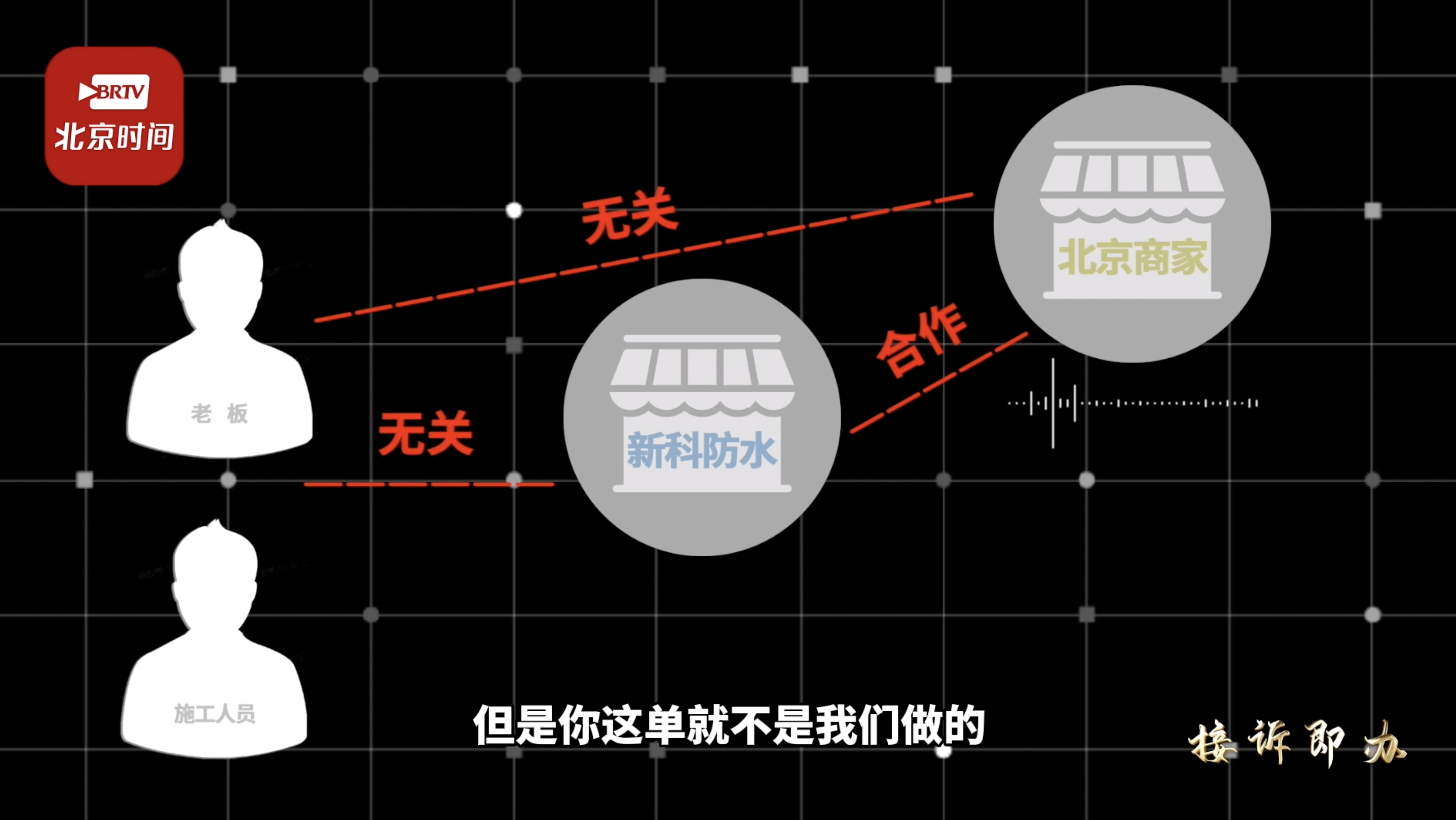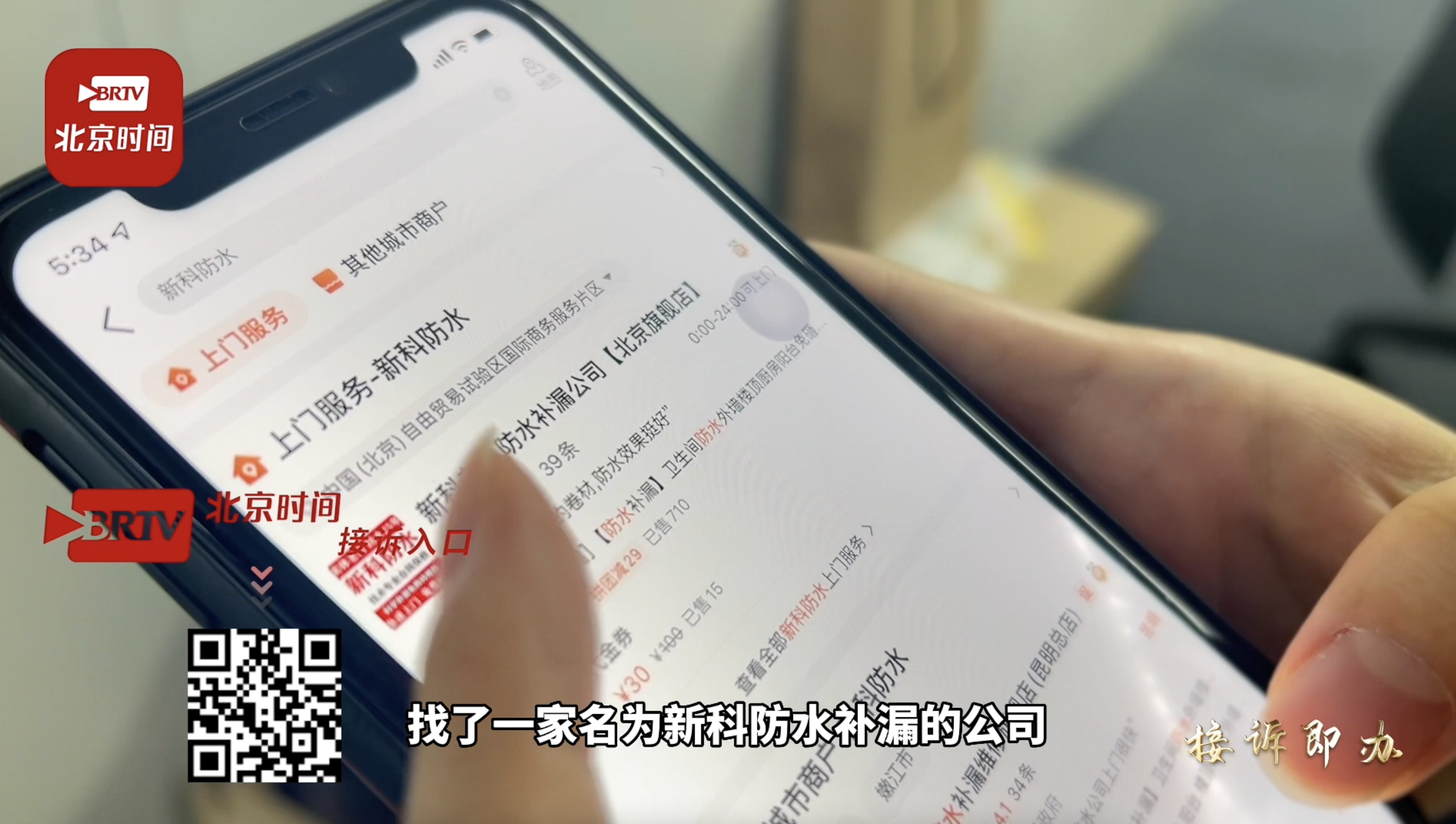 近日,家住房山区的张女士向北京时间接诉即办平台反映,自己在某点评平台上找了一家名为新科防水的补漏公司,在与该公司客服通过电话后很快就有一名自称老板的人给自己回电,并通过给屋顶打孔、注胶的方式为自家卫生间进行补漏,共注胶101斤,收费12000元,但漏水问题非但没有解决彻底,老板和施工员也联系不到了。可后来她发现,这两个人竟不是新科防水公司的人。张女士的信息是否被商家泄漏?北京时间记者随即介入了解情况。