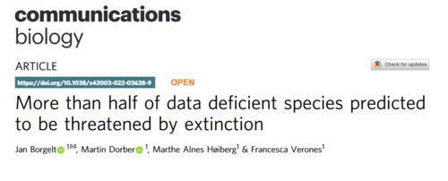 挪威科技大学(NTNU)研究人员训练了一个机器学习算法,让它计算IUCN红色名录之前评估过的26363个物种的灭绝风险。计算基于这些物种生活地区的已发表数据,以及已知会影响生物多样性的各种因素,如气候变化、人类的土地使用,以及入侵物种构成的威胁。作者随后利用该算法预测了全部7699个数据缺乏物种的灭绝风险。