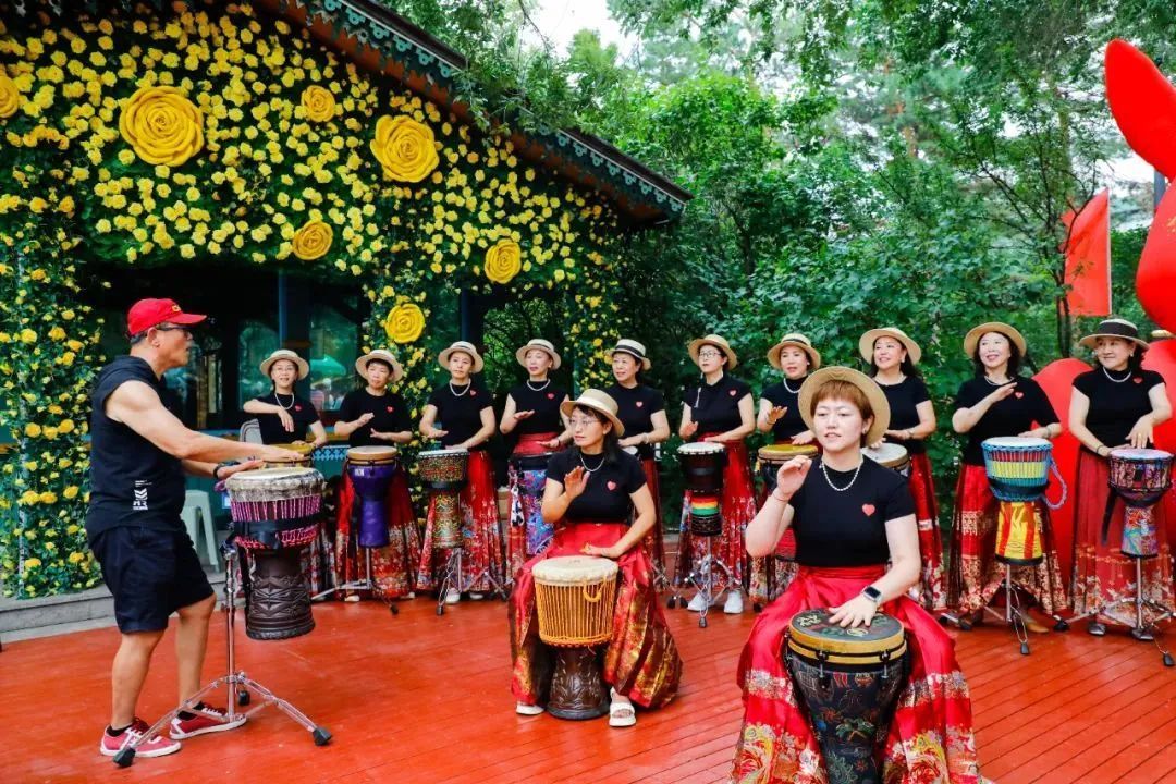 除此之外,别开生面的露天音乐会也在此上演。哈尔滨女子十二鼓乐坊团在现场用鼓声与观众热情互动,将现场的气氛推向高潮。