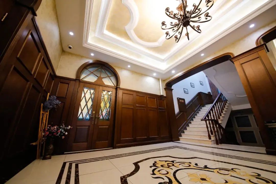 墙面上的油画、彩色的玻璃窗、旋转楼梯扶手上花纹卷成漩涡俱乐部内处处彰显欧式建筑的独特风格。