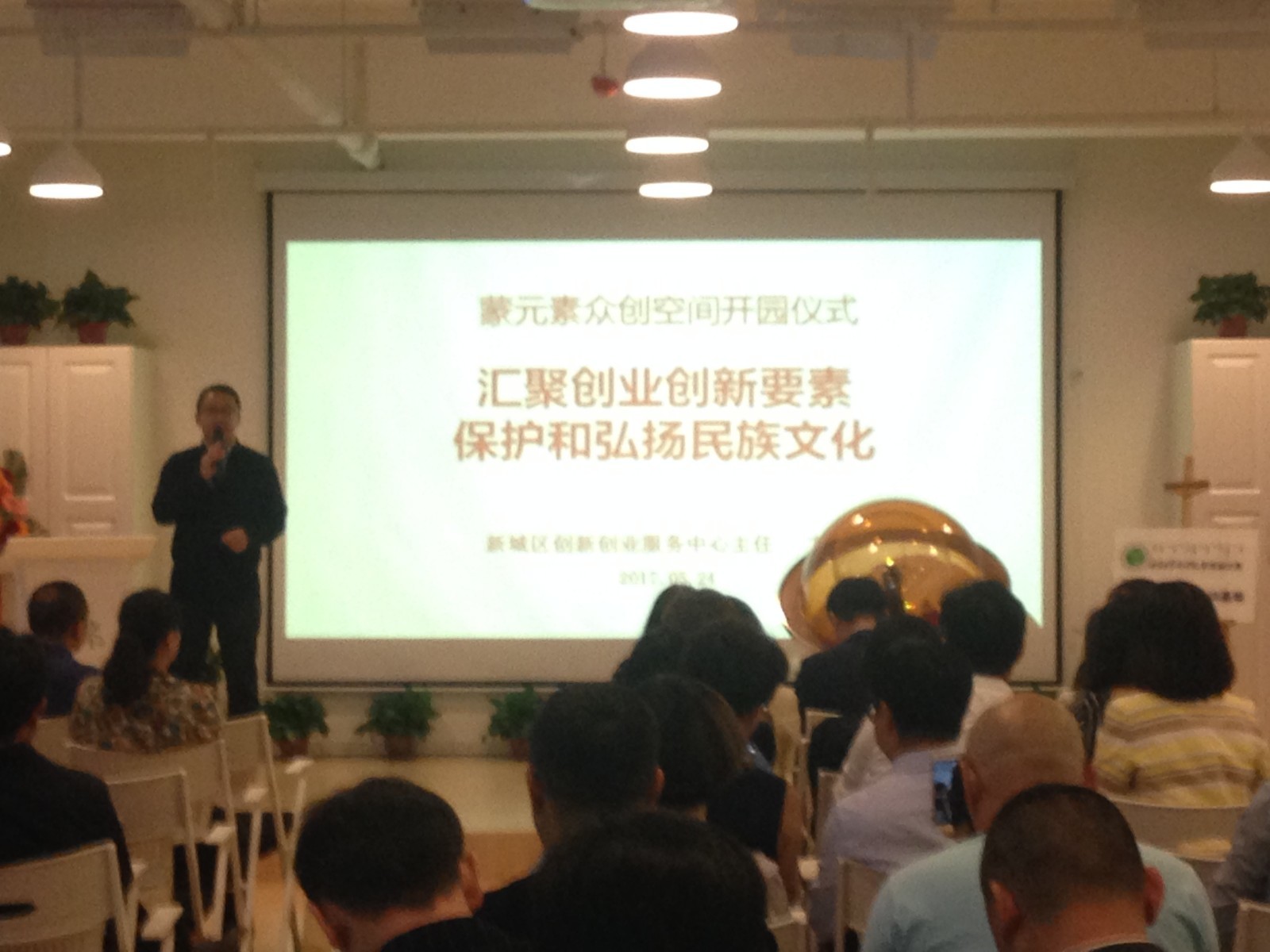 5月24日,内蒙古呼和浩特市新城区双创园区重点项目、自治区领先的民族文化产业专业孵化器——“蒙元素众创空间”在内蒙古双创园落成。