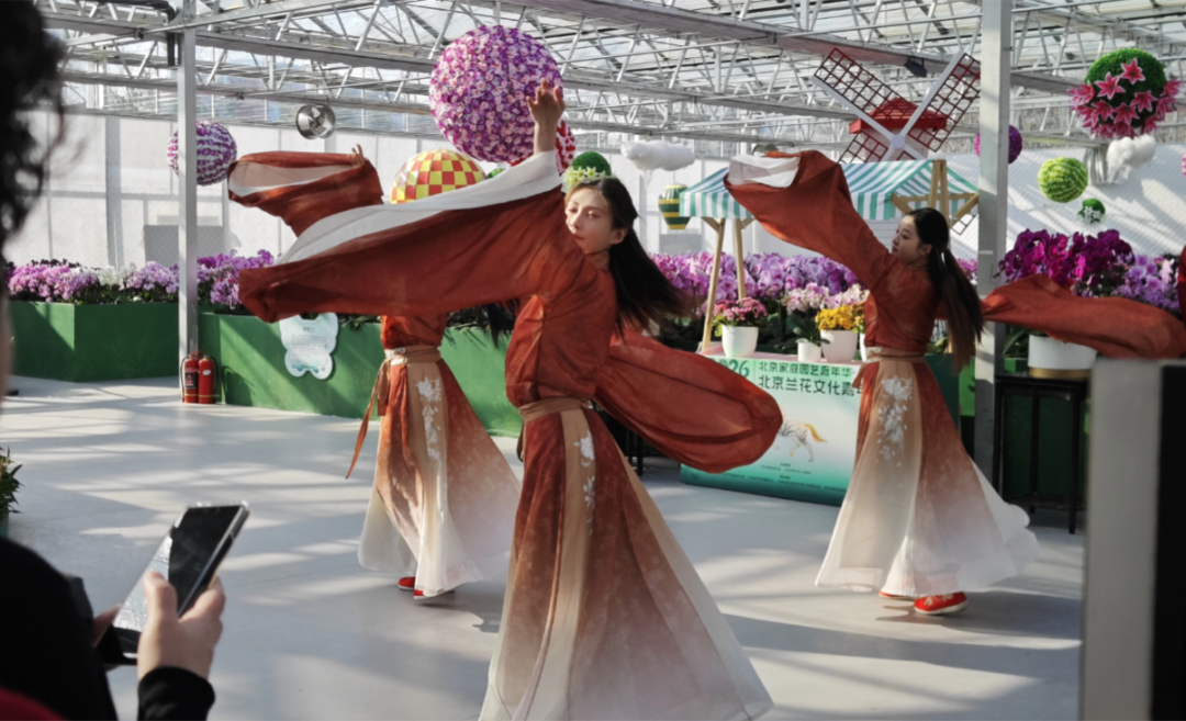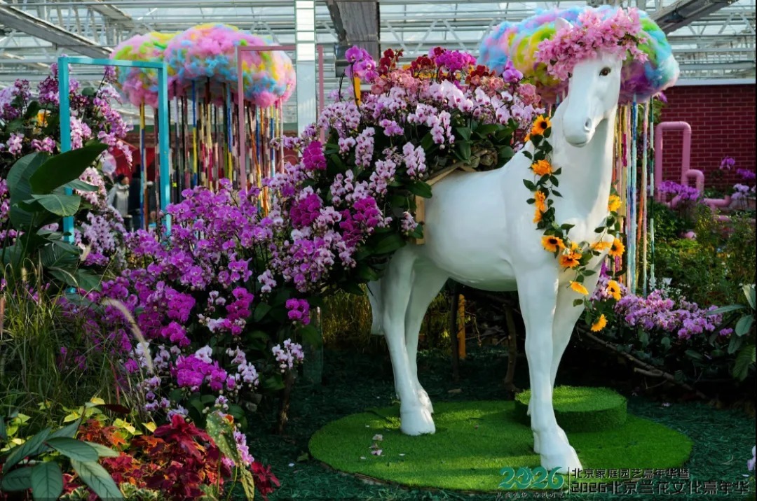 北京兰花文化嘉年华主场馆位于京北花世界,以“花卉+”多元消费场景为核心,构建农文旅体商深度融合的产业发展新模式。四大主题展厅各具风情,“纳福”厅里节庆元素与兰花相映成趣,“仙境”厅雨林秘境引人入胜,“金兰会”汇聚国兰精品,“兰庭”里更有兰花胜境、墨韵飘香。