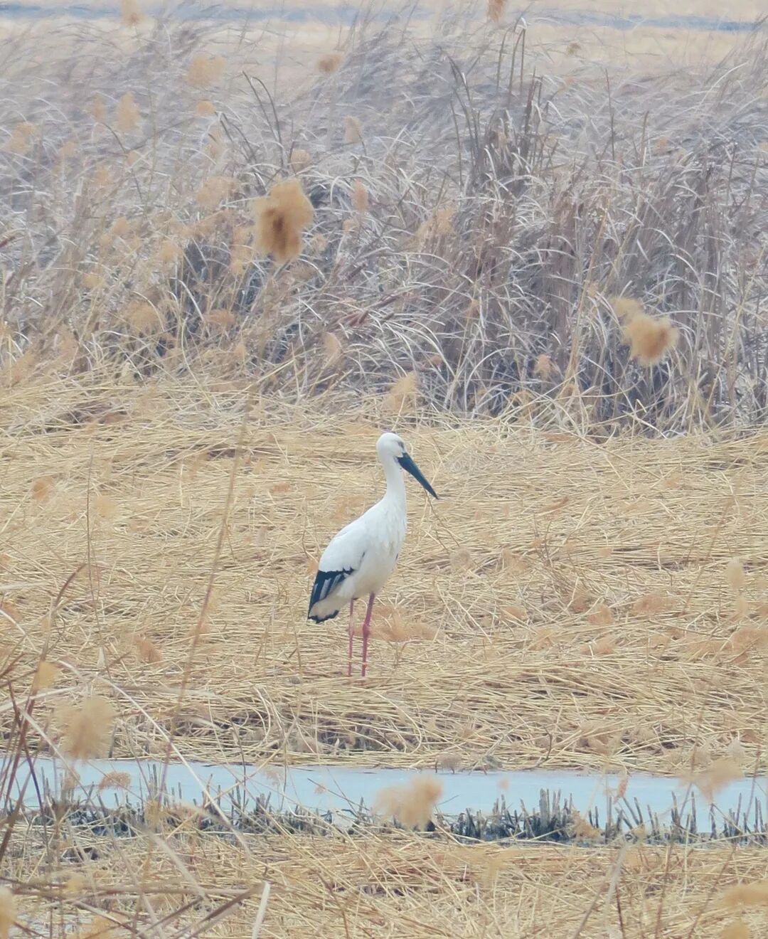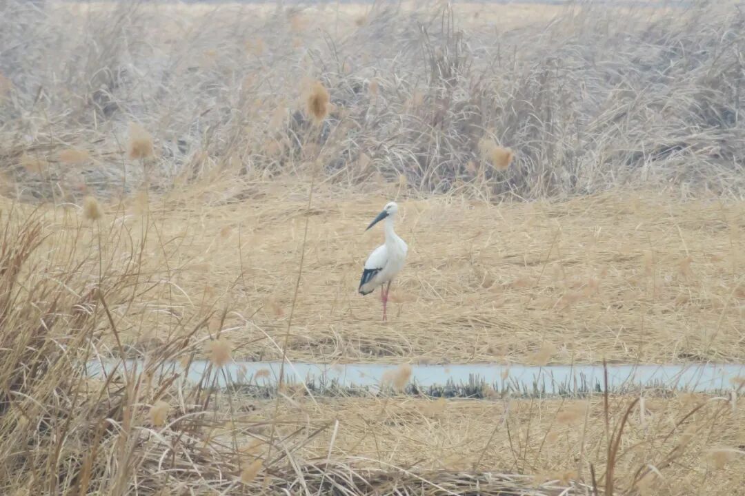 东方白鹳目前全球种群数量极为稀少,被世界自然保护联盟列为濒危物种,其对栖息地的生态环境要求极高,通常被视为湿地生态环境质量的指示物种。它们喜好在开阔的沼泽、湖泊和潮湿的草地上栖息觅食,对水质、食物来源和人为干扰都非常敏感。