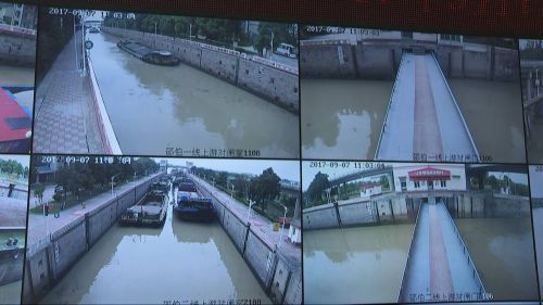 高效的通行效率,得益于邵伯船闸打造的船舶智能调度系统。在邵伯船闸的监控室里,记者看到了船舶调度系统,它相当于船闸的大脑和眼睛,通过这个系统可以对船闸三个闸室、六个闸口的船舶数量以及船舶的运行情况进行随时监控、随时调度。