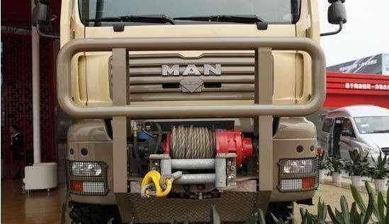 不过对于普通大众来说对于这个世界顶级越野房车的品牌还是非常的陌生的,我们能够车头的造型十分威武,霸气的进气格栅配以MAN经典的字母与标志,深灰色的哑光车漆,裸露的方形支架,还有车顶的四颗圆形越野射灯,真的是霸气外露,并且根据不同客户的需求,还可以安装像上面的绞盘等等一系列的配件。
