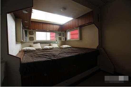 内部空间布置也非常人性化,厨房,卫生间一应俱全。为了保证电力供应,除了在铝合金储物箱里的柴油发电机之外,车顶还覆盖了一层太阳能电池板,足以满足车内照明及音响等的用电需求。