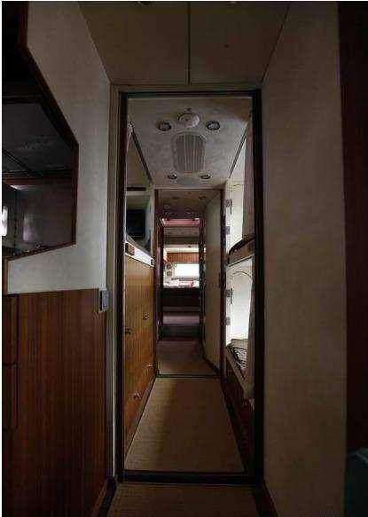 内部空间布置也非常人性化,厨房,卫生间一应俱全。为了保证电力供应,除了在铝合金储物箱里的柴油发电机之外,车顶还覆盖了一层太阳能电池板,足以满足车内照明及音响等的用电需求。
