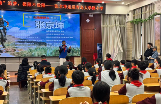 为积极响应市南区“十个百分百”榜样浸润活动,充分发挥榜样育人作用,让榜样精神浸润童心、引领成长,青岛大学路小学隆重举行“榜样进校园:一‘骑’追梦·极限不设限”主题活动,特邀全国青联委员、青岛市青联副主席、市南区政协委员、青岛市新联会青年委员会副主任、知名自行车运动员张京坤走进校园,与全校师生近距离互动,共赴一场充满勇气与热爱的追梦之约。