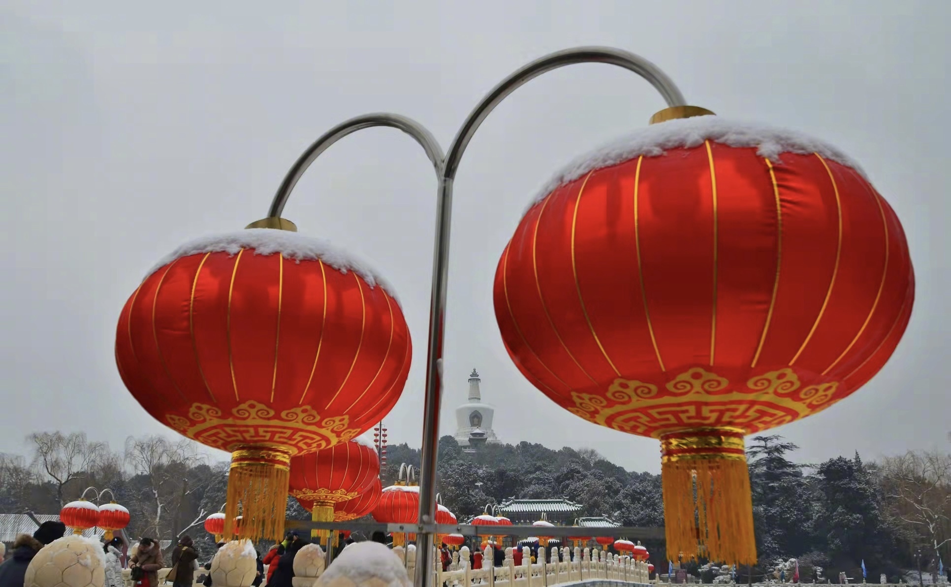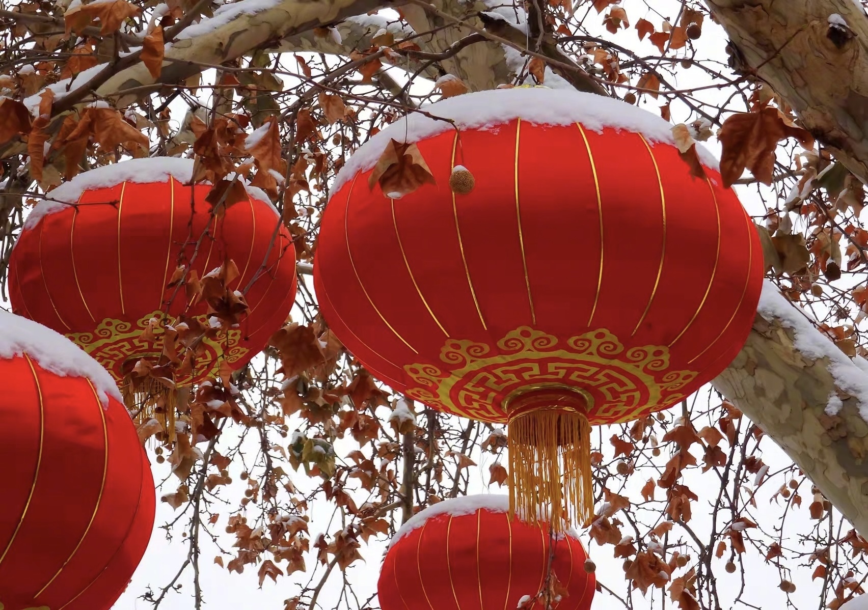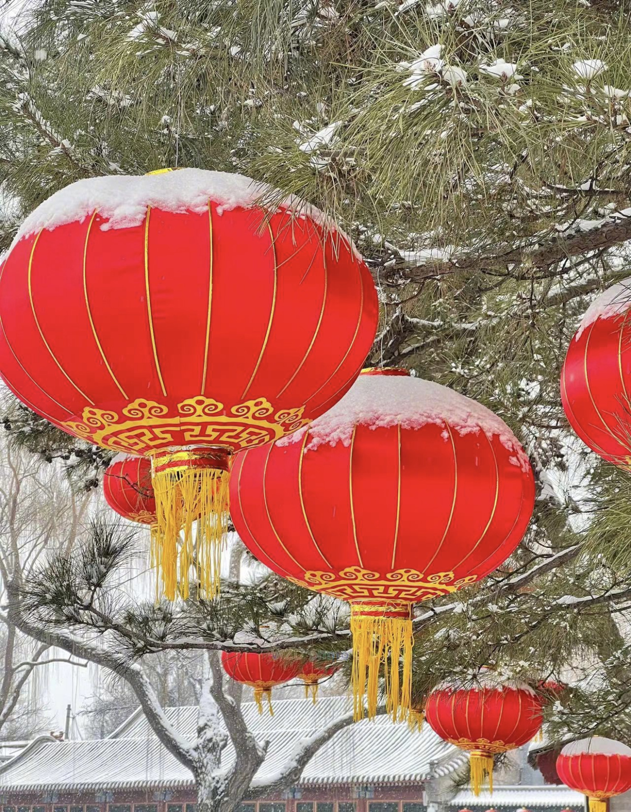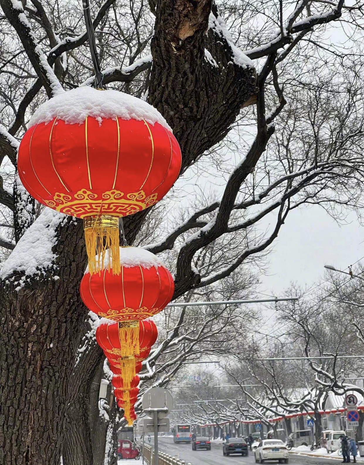 新春佳节到,红色成了北京城的主色调。高高挂起的串串红灯笼,像极了令人垂涎三尺的糖葫芦!树枝上红红火火的灯笼披着皑皑白雪,期待着冬奥会的到来!