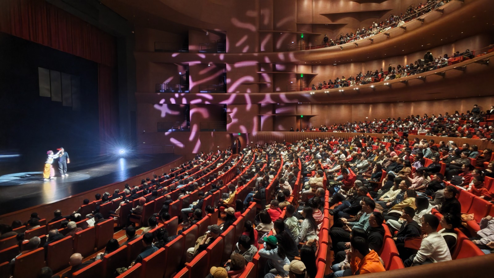 四天演出中,场内外洋溢着浓浓的年味与艺术带来的感动。每场演出前,剧场前厅都热闹非凡——身着传统服饰的“财神”早早守候,与广大观众亲密互动、合影留念,为大家送上新春的美好祝福。孩子们更是格外兴奋,不少小观众看完演出后纷纷表示:“节目太酷了!既有传统文化的韵味,又特别有创意,我们非常喜欢!”