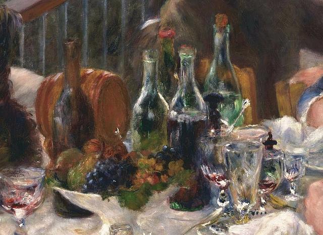 在温暖的夏日阳光下,约上三五好友,水上泛舟,再啜一口好酒……这样过上一天简直不能更惬意了。在下面这件作品中,皮埃尔·奥古斯特·雷诺阿(Pierre-Auguste Renoir)通过静物、人物和风景的结合,描绘出了这样慵懒的一刻。