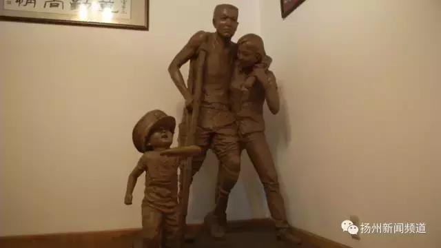 在陈巧云家的客厅里有件雕塑,出自他们毕业于南京艺术学院的儿子之手,妻子正在搀扶丈夫,和一旁快乐的孩子共同前行。丈夫闫绍田说这就是他家的真实写照!