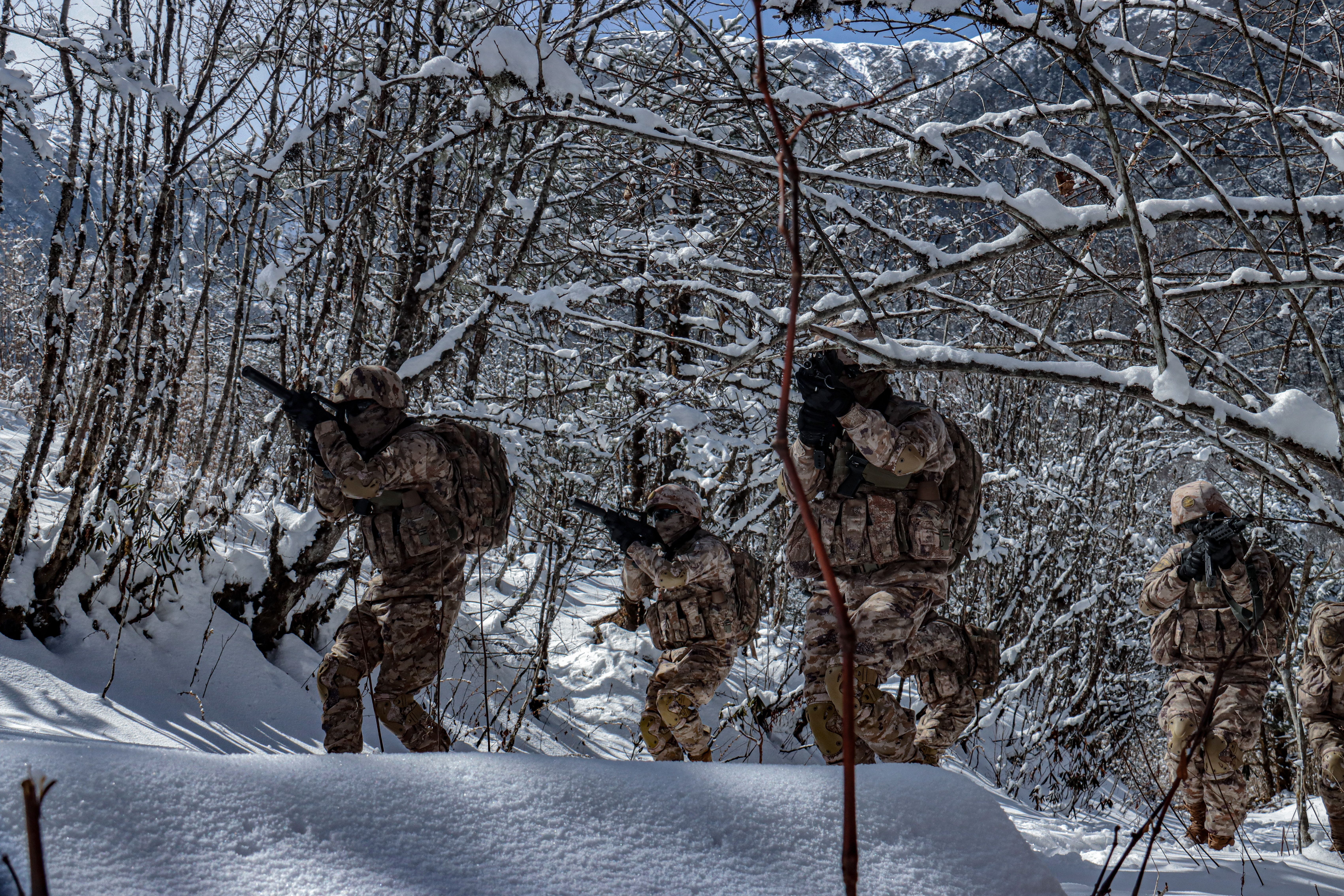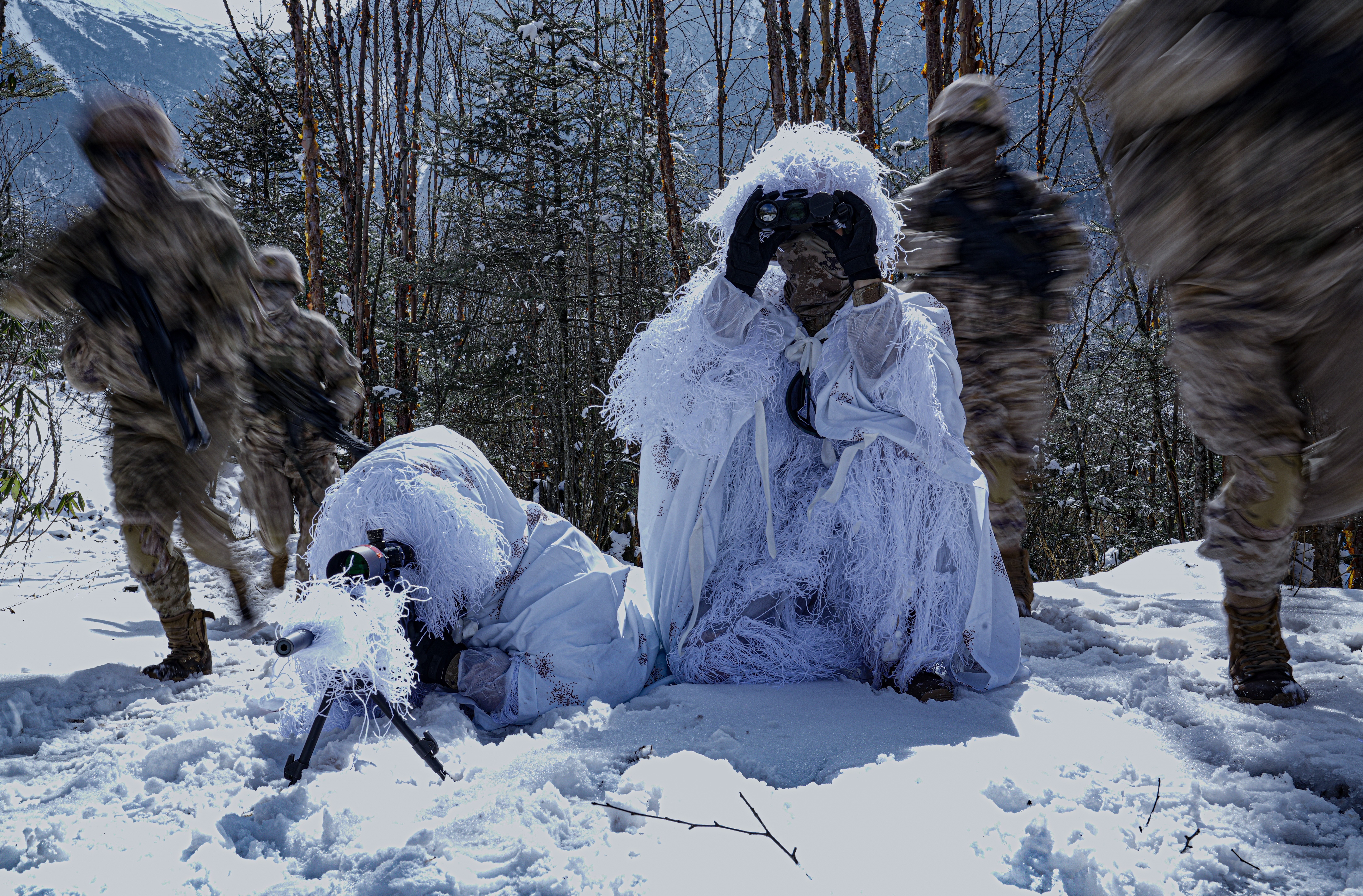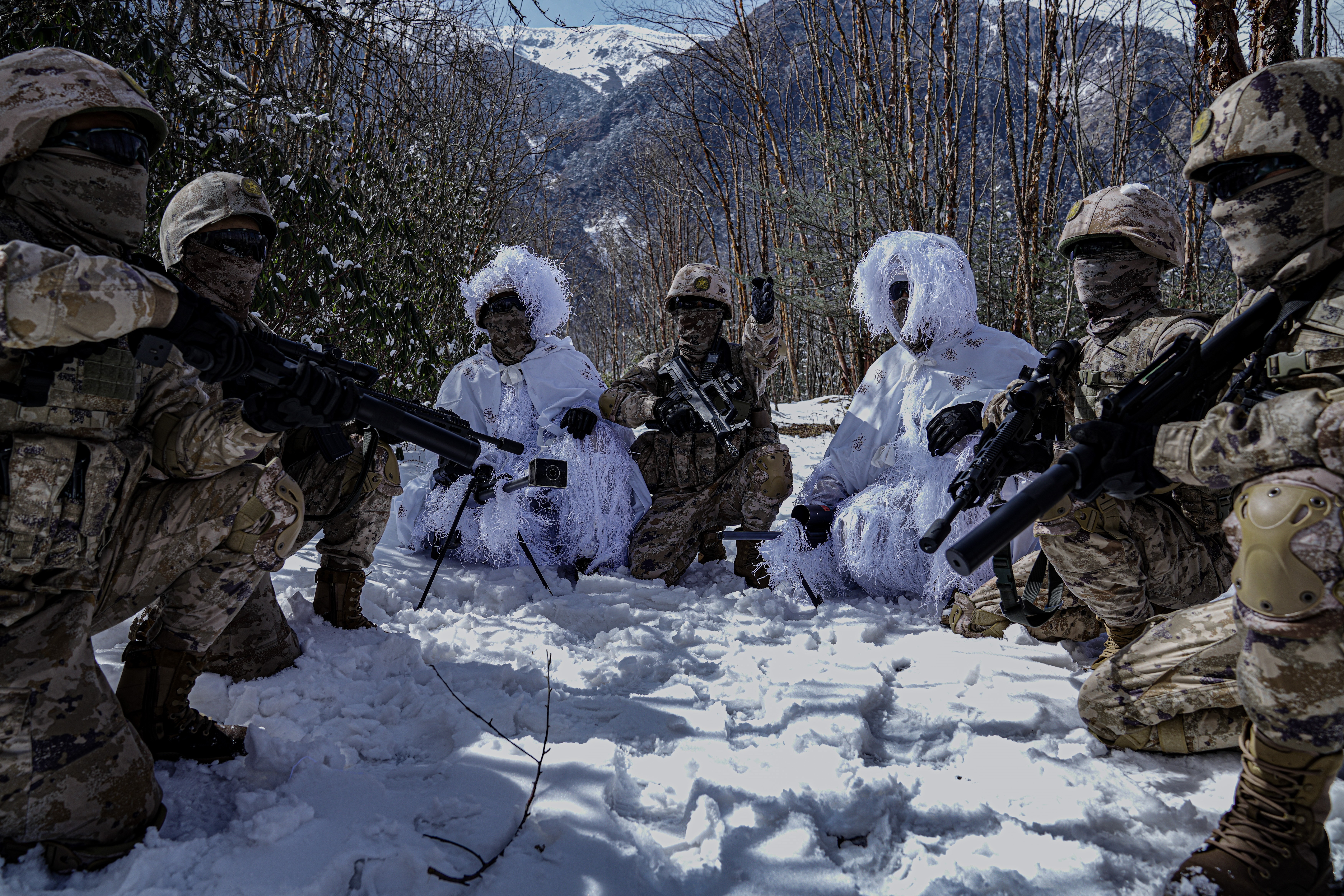 近日,在野外驻训的西藏军区某旅侦察分队,结合野外复杂环境,依托高原高寒等自然条件,在海拔3500多米的雪域高原,组织侦察渗透、协同作战、潜入“敌后”等多课目连贯考核,全方位检验侦察兵综合作战能力。