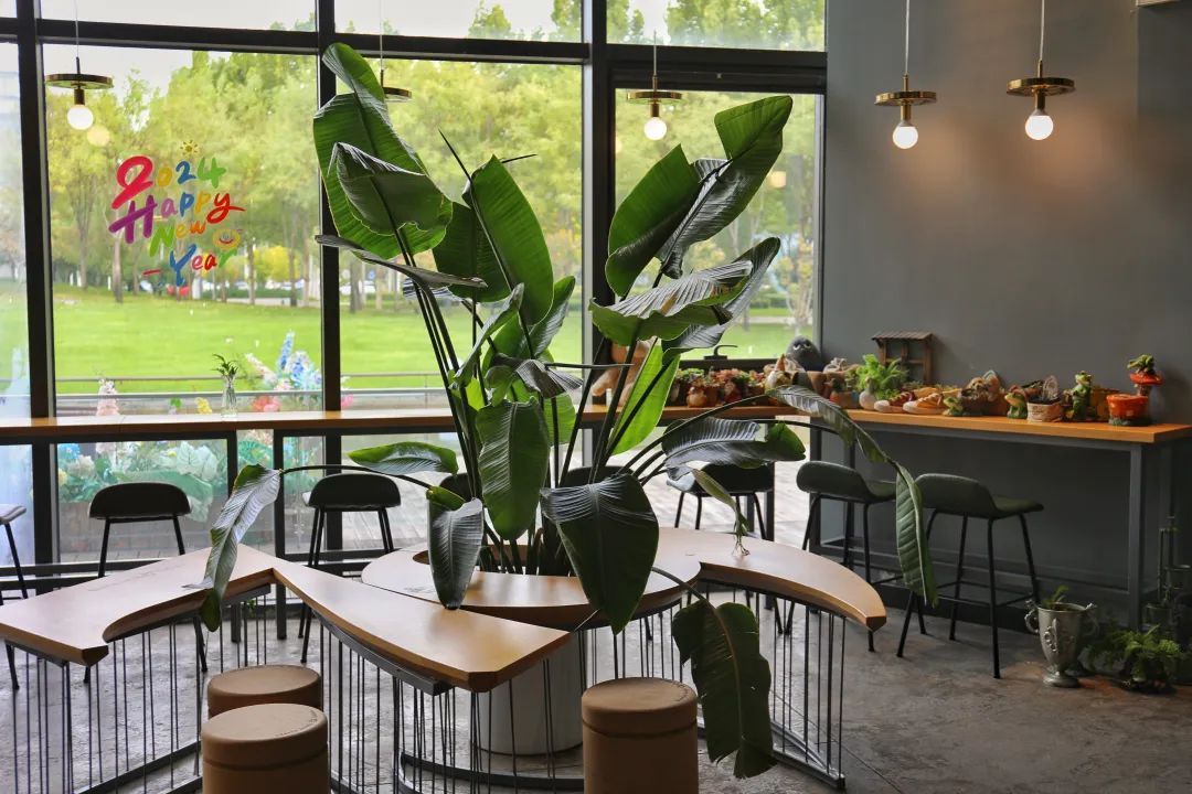 巨大的落地玻璃窗更把咖啡厅内衬托的明亮整洁