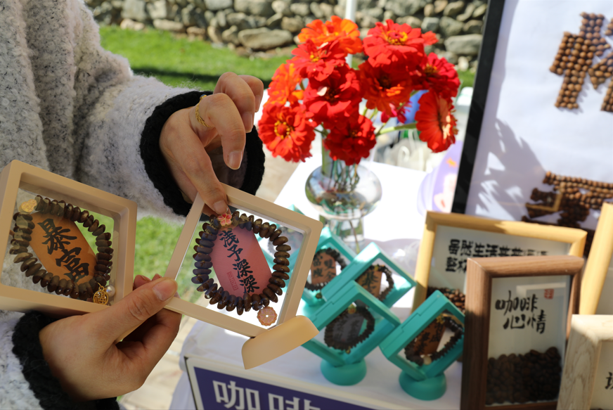 tm咖啡手工制作的咖啡豆手串和“啡咖不渴”包包也一样充满新意。“这两年怀柔村咖的发展越来越好了,村咖大赛的举办给了我们一个更大的展示自己的平台,起到了非常好的宣传作用,未来我们也将积极地研发新品和更多的文创产品,为怀柔村咖的发展出一份力。”肖卫华说。