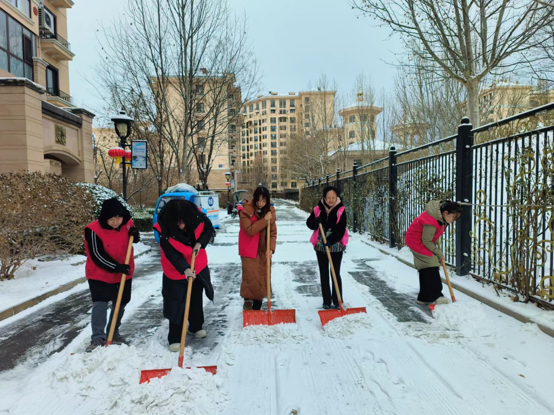 顺义区妇联组织巾帼志愿者扫雪除冰暖心护行。