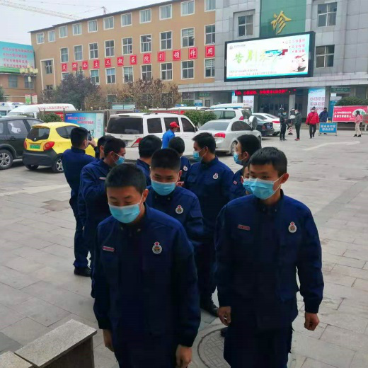 为切实做好医院安全生产工作,平安度过冬季火灾高发期,2020年11月25日,开封市顺河区消防大队与开封市人民医院保卫科开展联合联动消防演练。当日上午9点,开封市顺河区消防大队灭火中队长带领该队消防战士抵达医院门前列队入院。