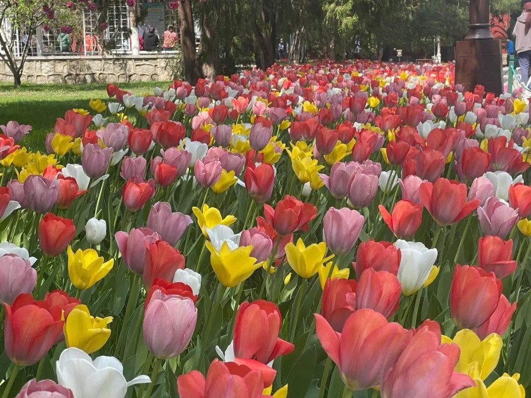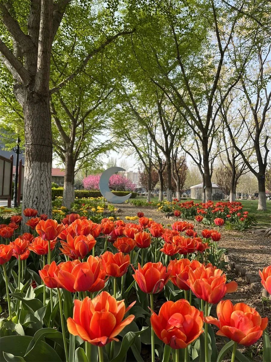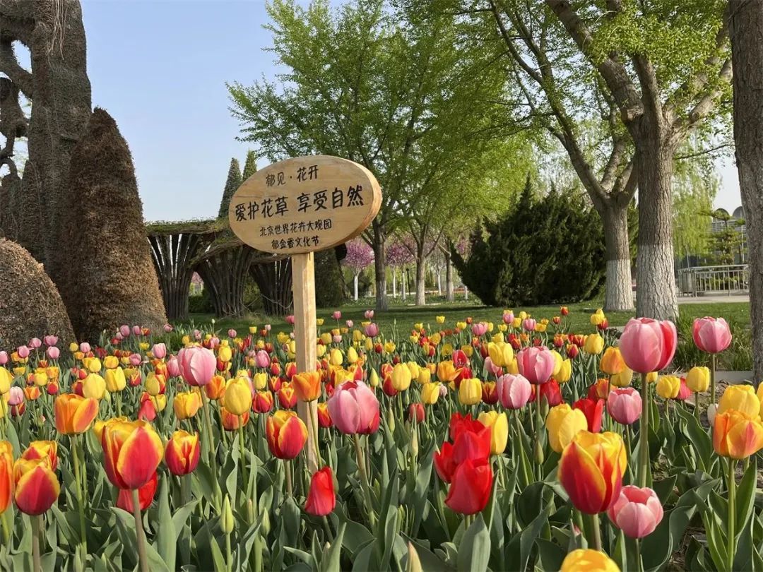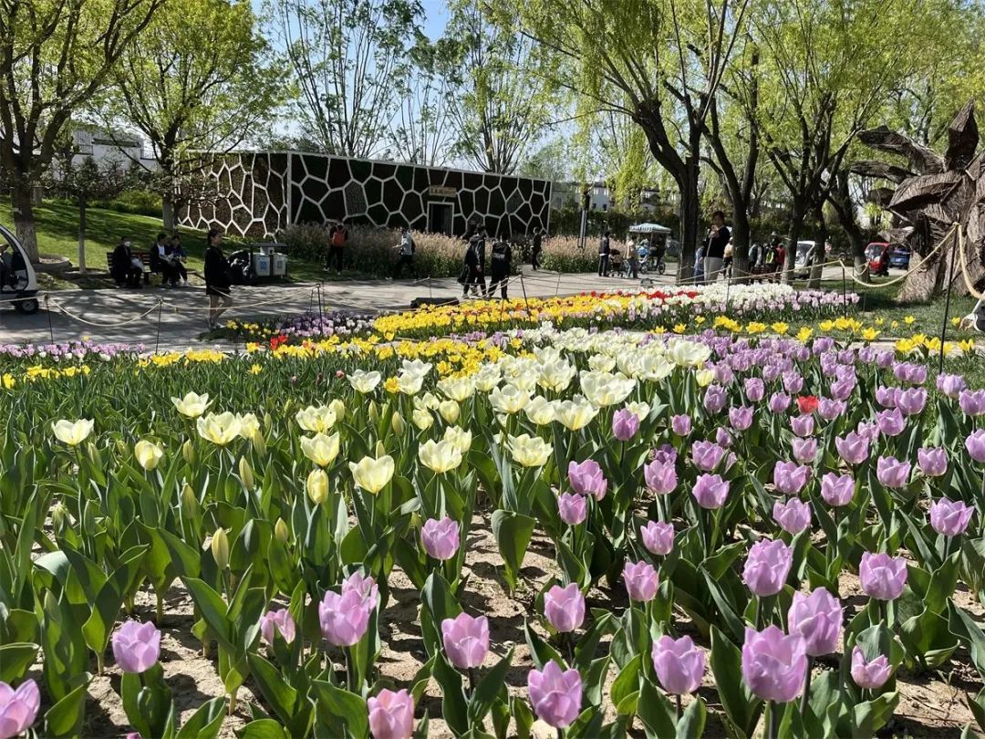 房山长阳公园今年首次成为北京市郁金香文化节展区。这里的郁金香种植面积达3000余平方米,约10万株种球,主要有检阅、拉里贝拉、红绣球、荷兰美人、阿波罗精华、班雅、月光和尼雅各塔等15个品种,分为红、紫、黄、粉红、橙、粉白等多个色系,为游客呈现一场视觉盛宴。
