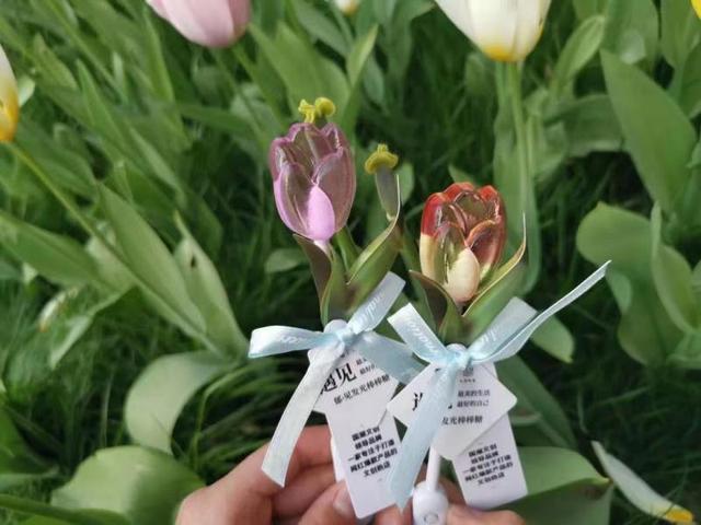 春花暨郁金香观赏季期间,中山公园文创店推出众多特色文创产品,如郁金香发光棒棒糖、郁金香团扇和文创雪糕等系列产品,让游客在游园赏花的同时,增添一份别样的乐趣。